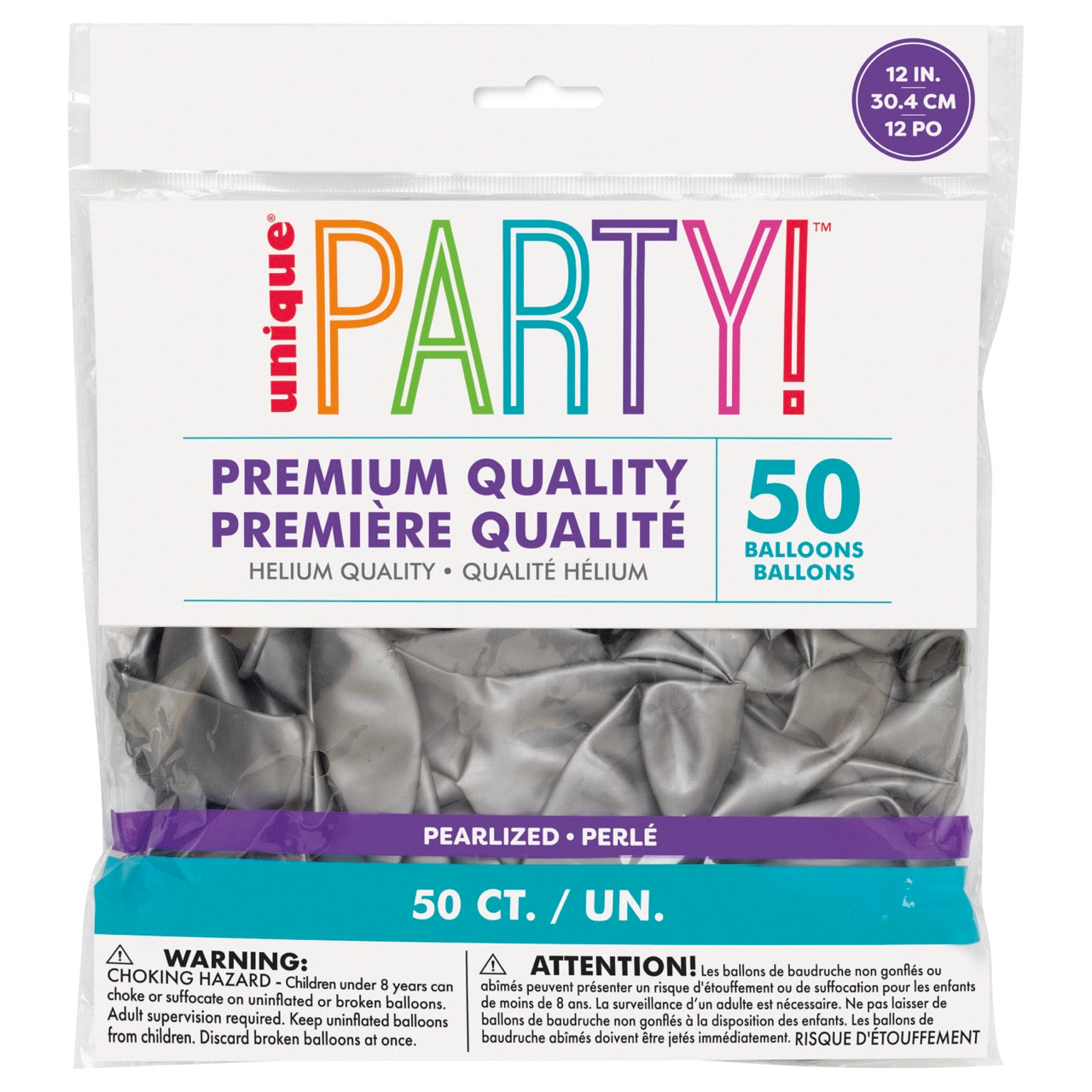 12in Packaged Premium Latex Balloons 50ct - Pearl Silver