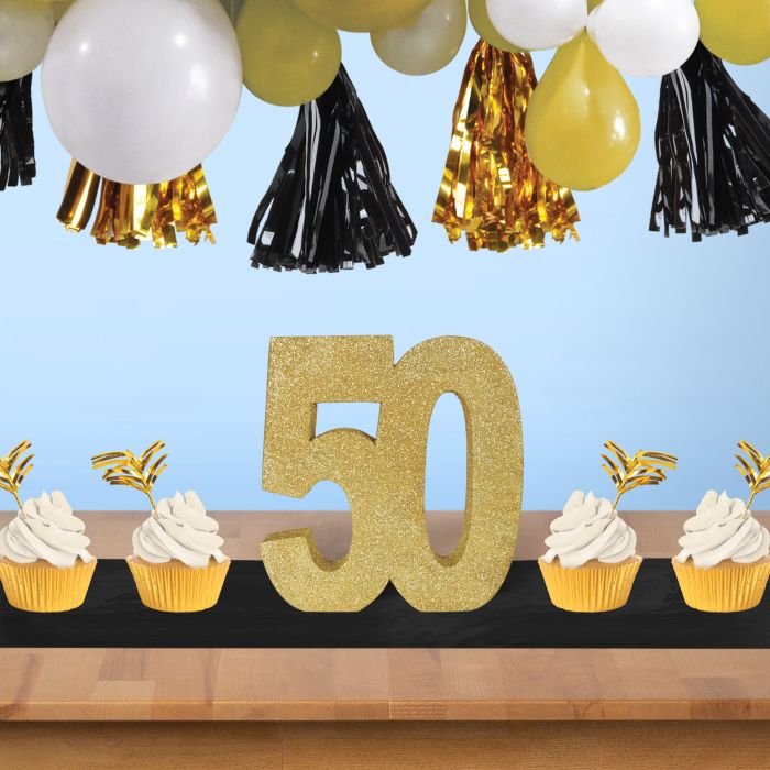 Celebrate turning 50 in golden style with this eye-catching centerpiece!