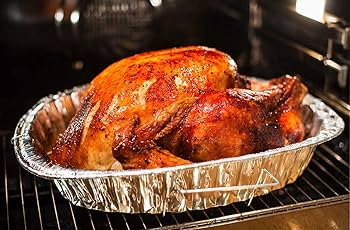 Expertly crafted from premium quality aluminum, this oval roaster pan with handles offers durability and versatility for all your cooking needs. Measuring 17.75 x 17 x 3.25 inches, this lightweight pan evenly heats, cools, preps, and stores your dishes without needing extra oil. Perfect for catered meals without the need for double pan layering.