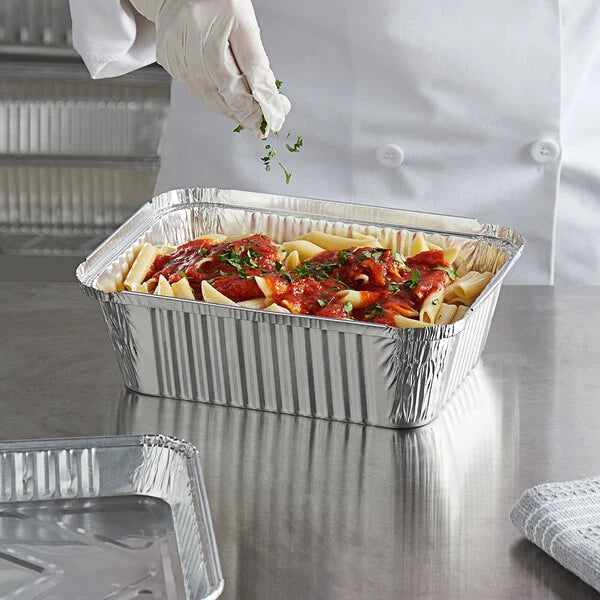 This durable and lightweight aluminum pan is the perfect take-out container for your customers. It's ideal for both restaurant leftovers and home use, providing a hassle-free solution for all your take-out needs. Say goodbye to messy transfers and hello to convenience and efficiency.