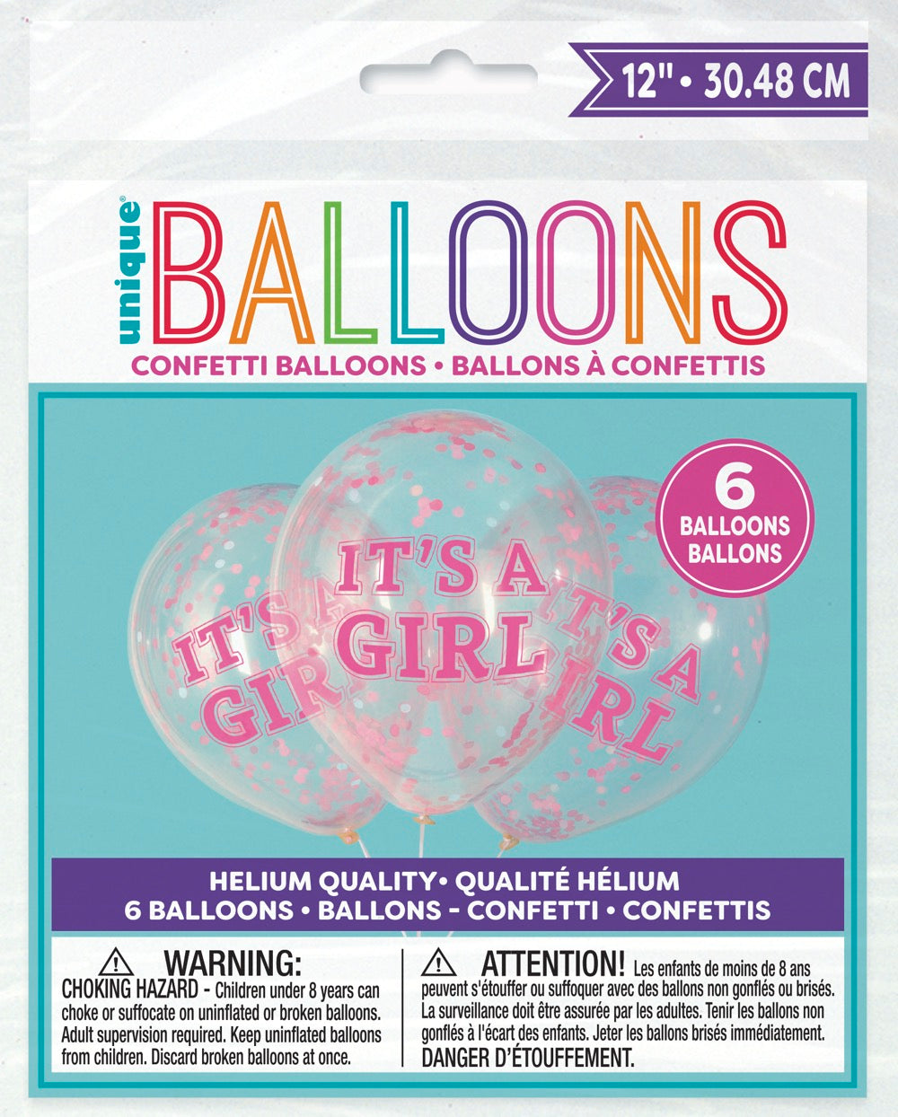 Girl Clear Latex Balloons with Pink Confetti 12in 6ct