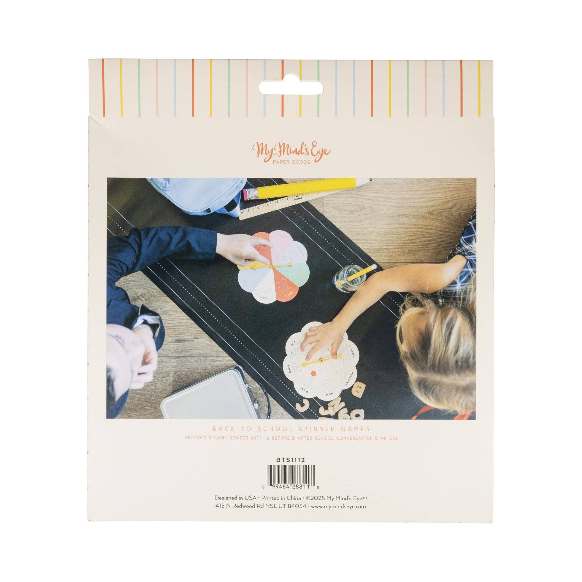 Get ready to spin into the new school year with our Back to School Spinner Game! Kick off the day with fun conversation starters for before or after school. This game will get the conversations started and keep the good times rolling. • Spinner game is 7" x 7" • gold foil.