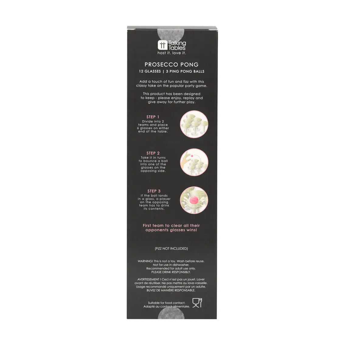 A classy twist on your classic beer pong game, Prosecco Pong by Talking Tables is an essential for parties. Pick a side, gather your teammates and get the party started! Place 6 prosecco glasses on either end of the table and divide into two teams. Take it in turns to bounce a ball into the glasses of the opposing team. If the ball lands, they drink! A great drinking game for Bachelorette Party, Frat Party, Girls Night, Birthday Party, Bridal Shower or NYE celebration! It also makes a great birthday present, Christmas gift for her or gift for a Prosecco lover!