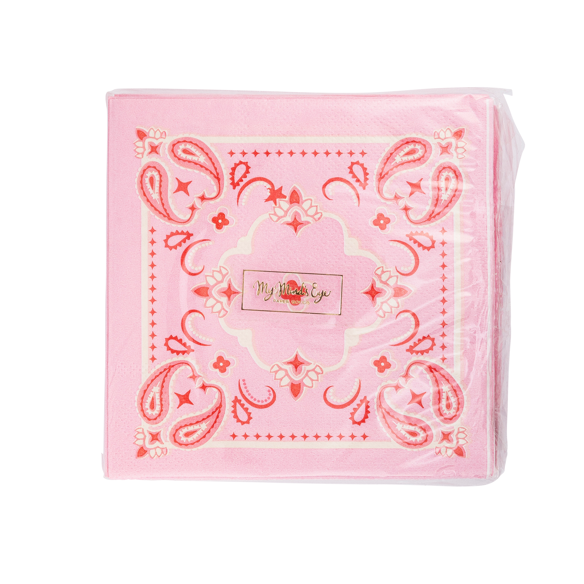 Get the party started with these cute Bandana Paper Cocktail Napkins! Perfect for cowgirl themed events, these pink napkins will add a touch of fun to any occasion. Don't forget to snap a pic with these bandana-inspired napkins! • includes 24 paper dinner napkins • 5" x 5"