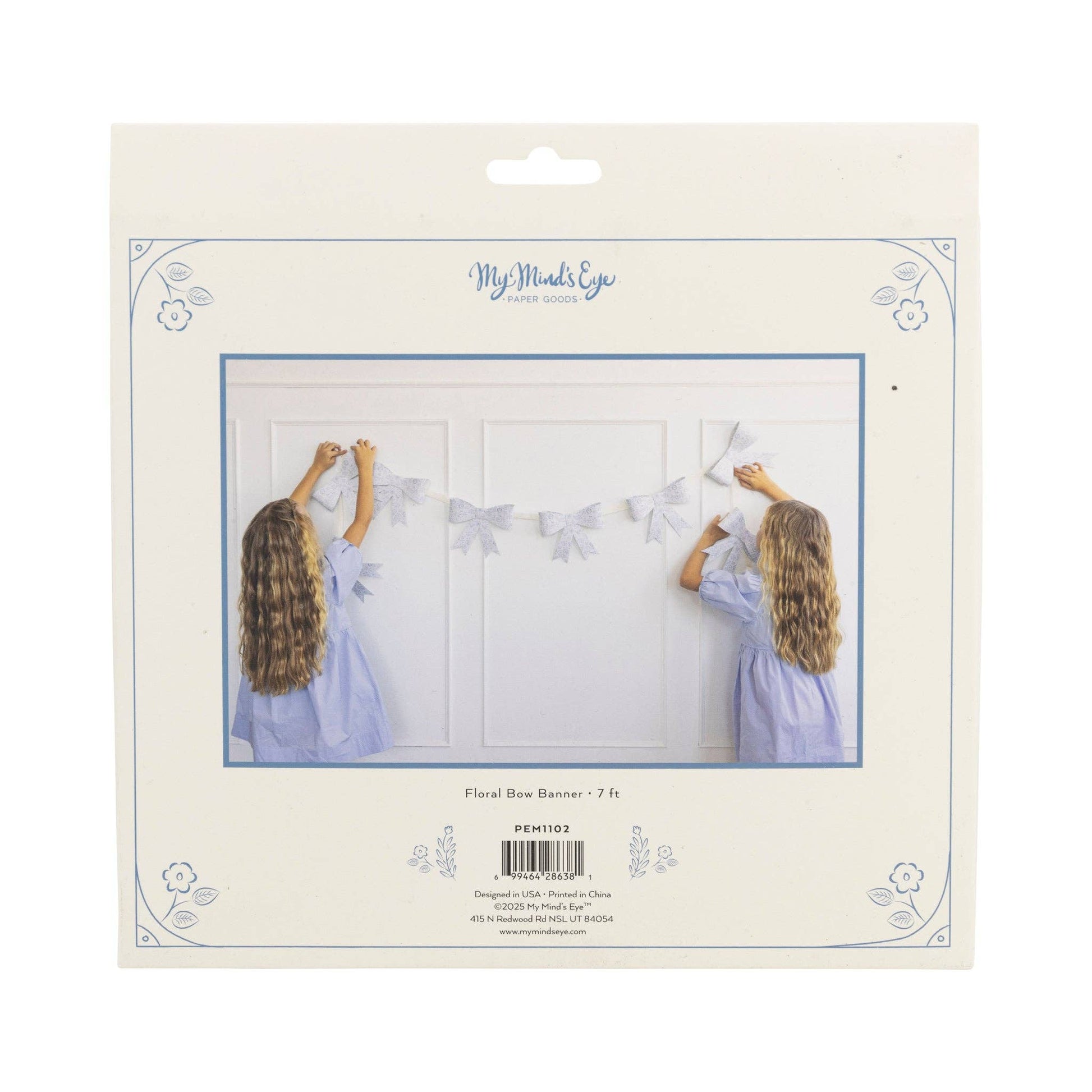 Add a charming touch to any spring celebration with our Floral Bow Banner. Made of high-quality paper, it features delicate flowers and a cute bow design. Perfect for weddings, baby showers, or garden parties. Spring into style with this beautiful banner! • Includes 1 paper banner, approximately 7' long • Pieces are approximately 7" x 8.5" • includes 8 paper bows