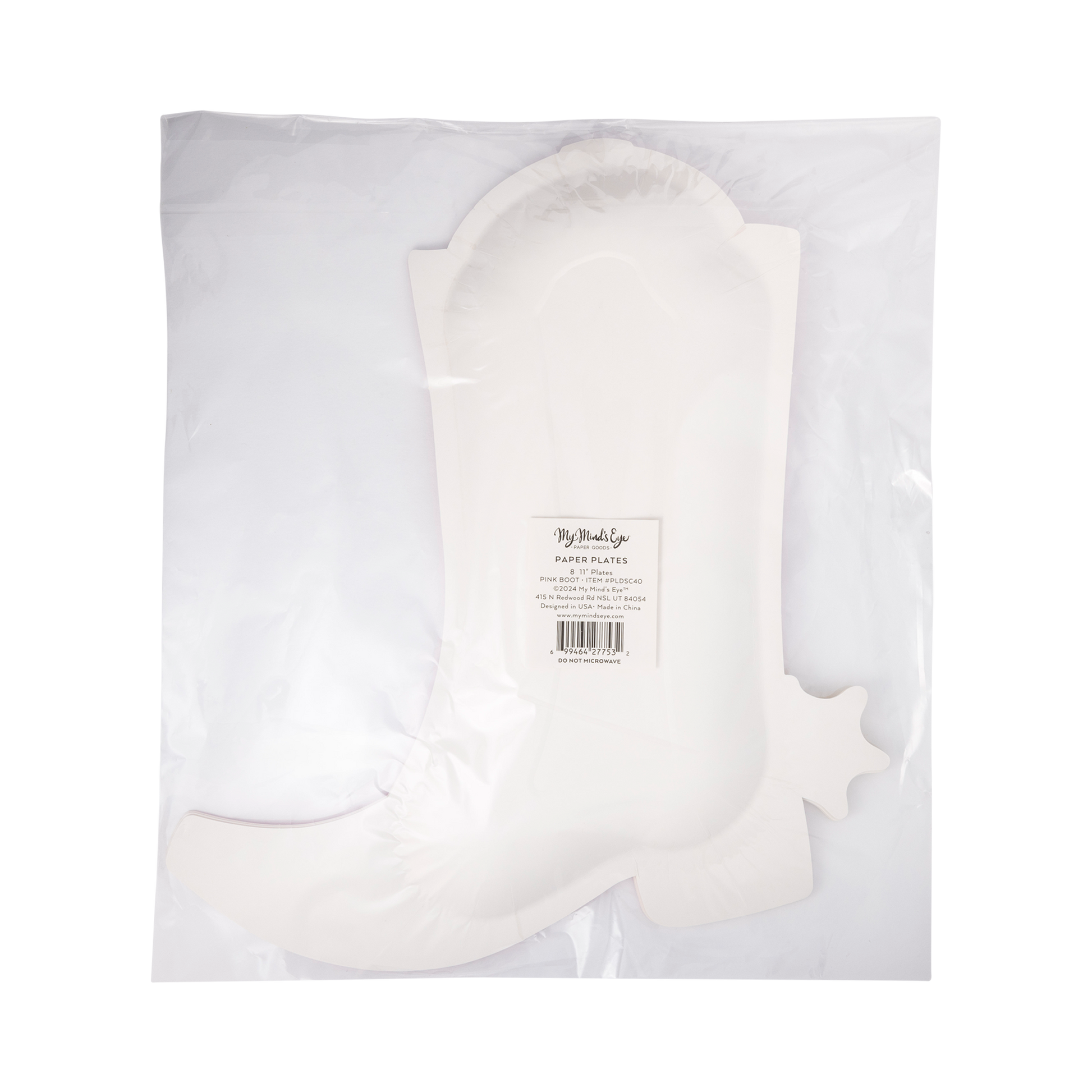 Saddle up for a good time with our Cowgirl Pink Boot Shaped Plate. This fun and quirky plate is perfect for parties and adds a unique touch to any table setting. Yee-haw! Get your guests in the party spirit with this playful pink cowboy boot shaped plate. • includes 8 paper plates • 10 x 11 inches • gold foil