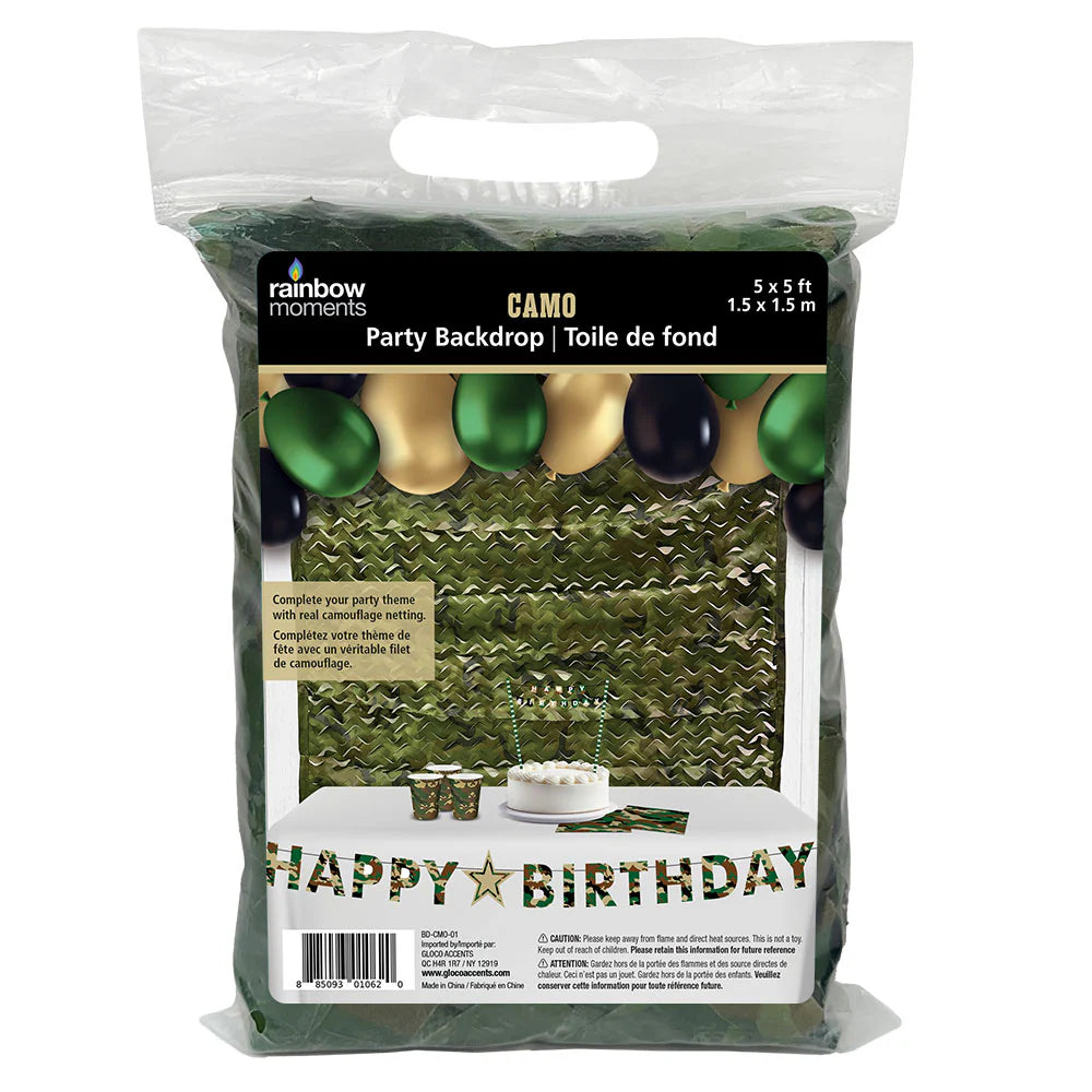 Elevate your camo-themed party with our stunning camouflage backdrop net, designed to create an immersive atmosphere for any themed party with camouflage decor.