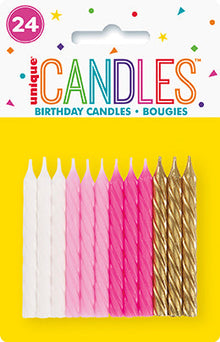 Glitter and Gold Spiral Birthday Candles - Assorted 24ct
