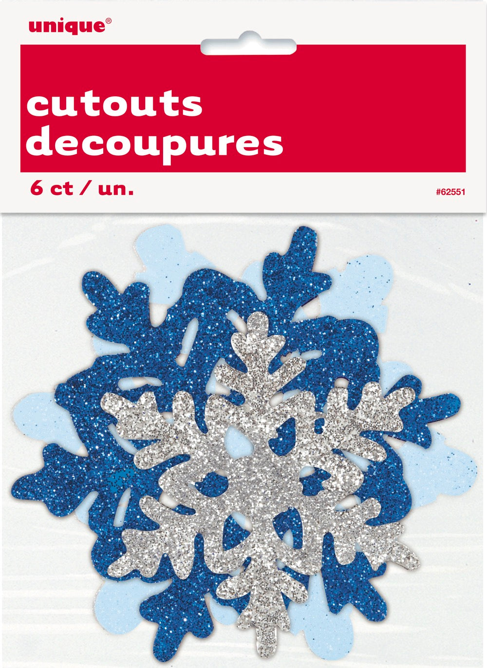 Mini Snowflake Glitter Cut Outs 6ct - Assorted