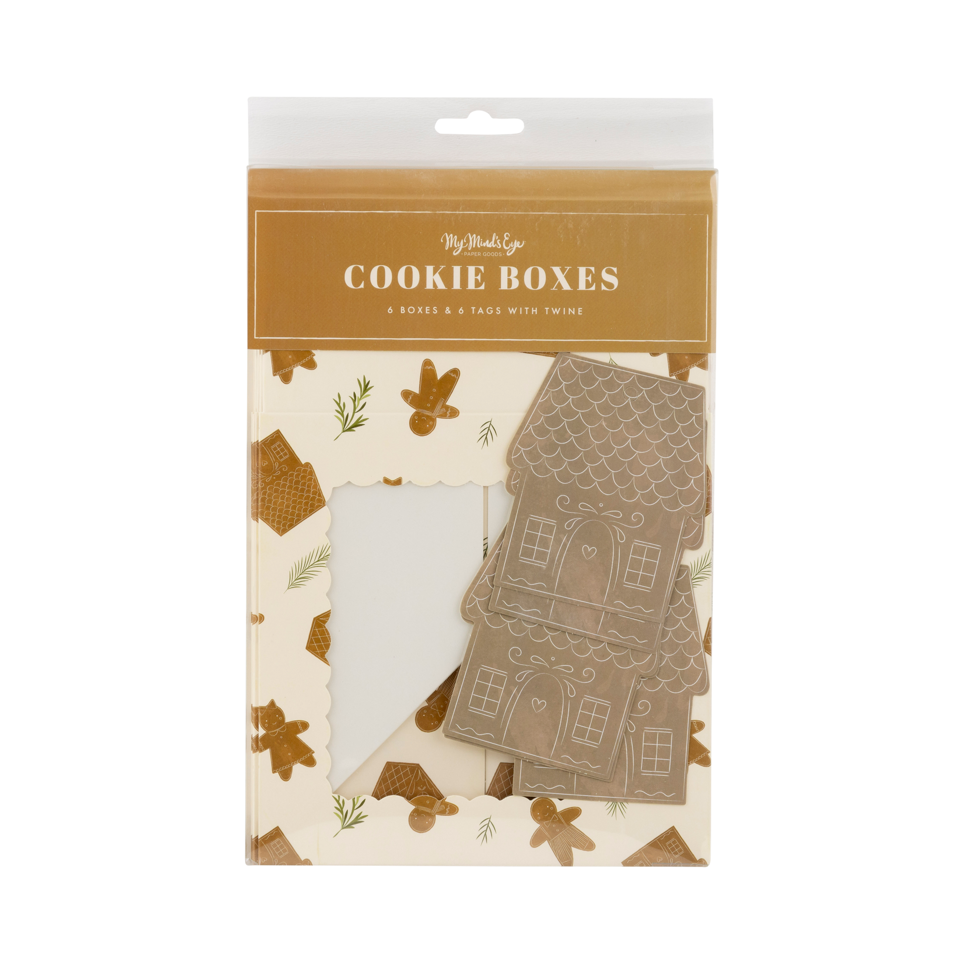 Add a dash of whimsy to your holiday party with these gingerbread cookie boxes. Perfect for storing and gifting delicious treats, these boxes are sure to bring a smile to anyone's face. Time to get your gingerbread game on! • includes 6 paper cookie boxes with window • approximately 6 x 6 x 3 • includes 6 paper tags with twine.