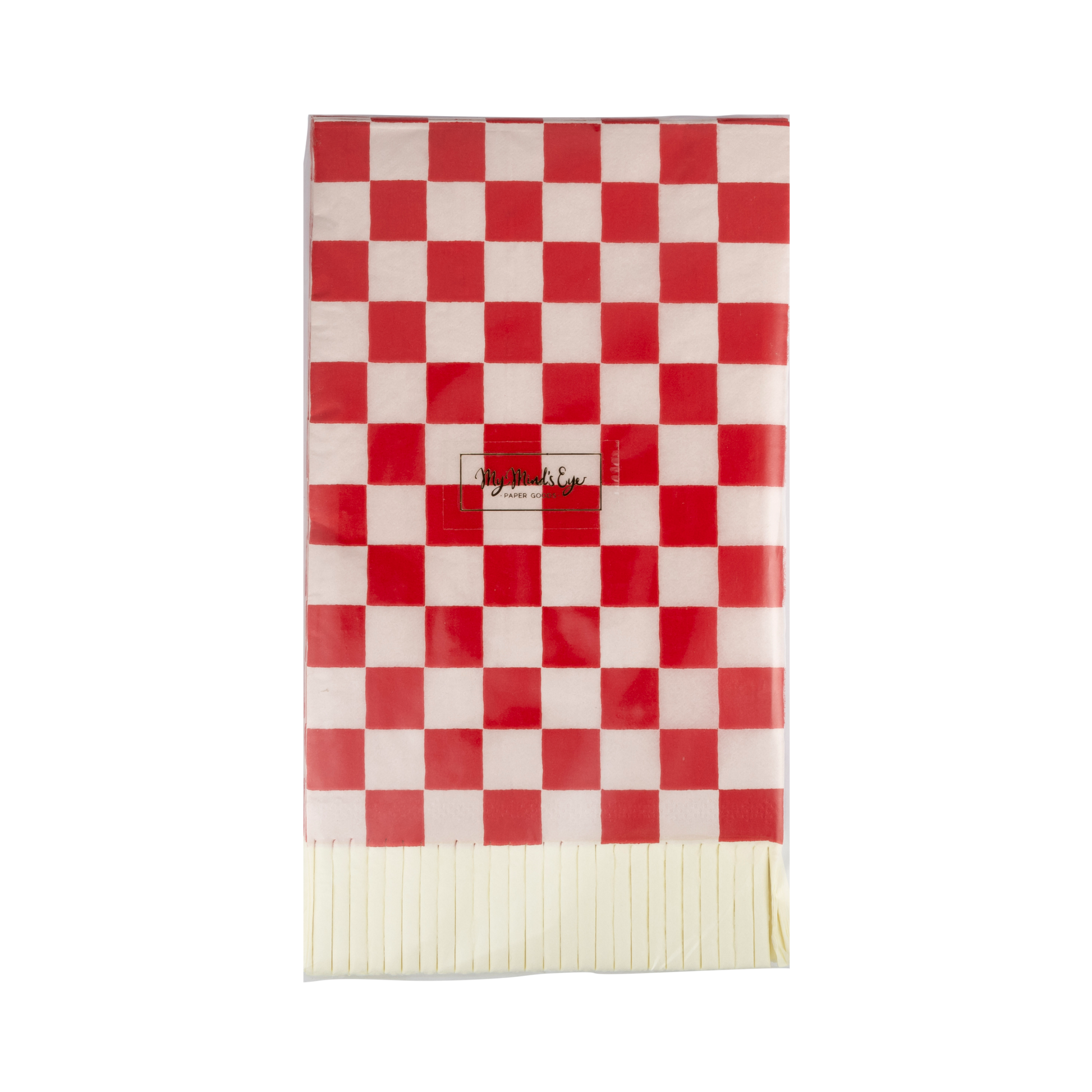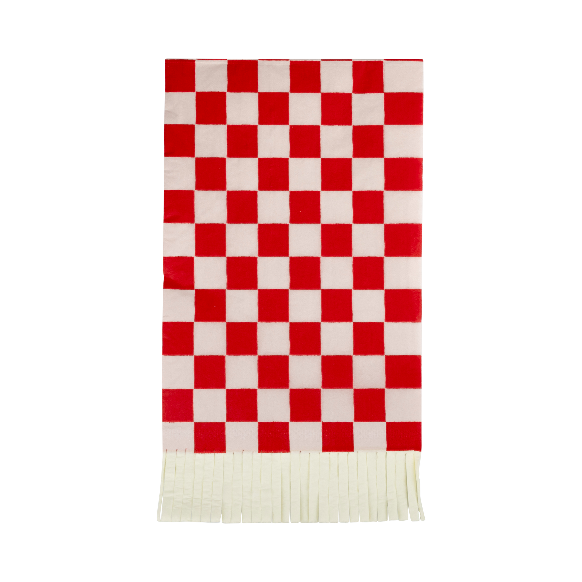 Add a pop of fun and color to your dinner table with our red and pink guest napkins! These napkins feature a playful red and pink checker pattern with a fringed border for added charm. Perfect for adding a touch of personality to your holidays. Wow your guests with these statement napkins!