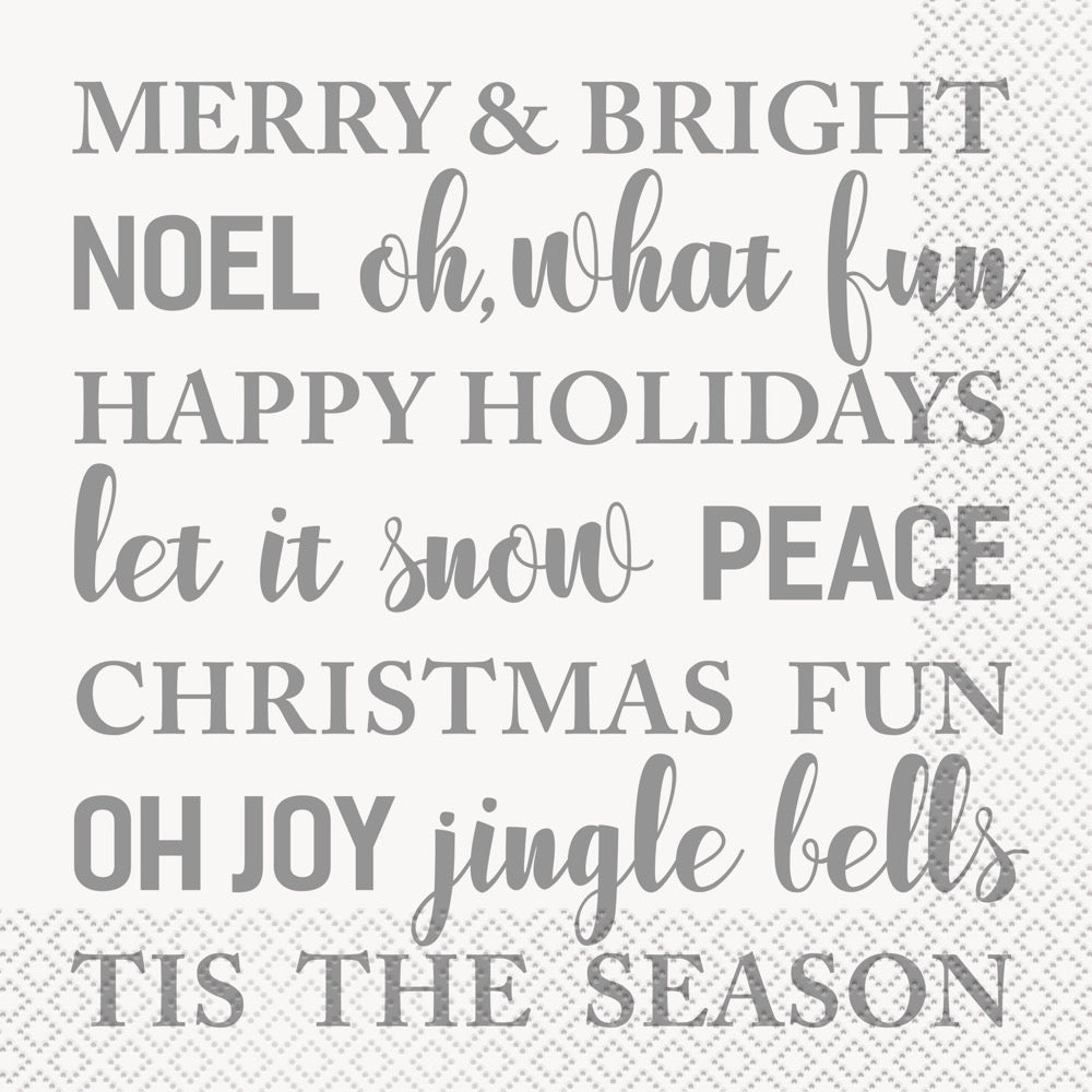 Silver & Gold Holiday Snowflakes Merry and Bright Lunch Napkins 16ct