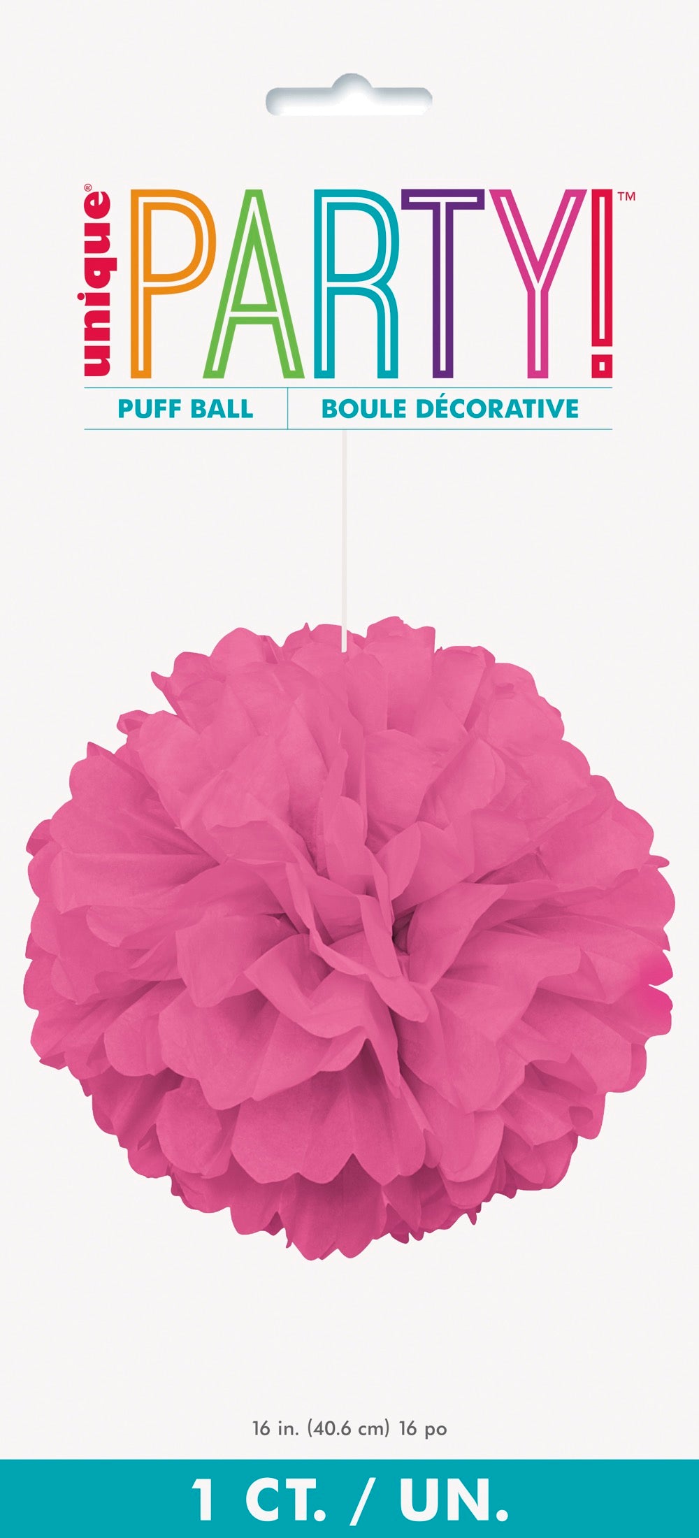 Hot Pink Solid 16in Hanging Tissue Pom Pom