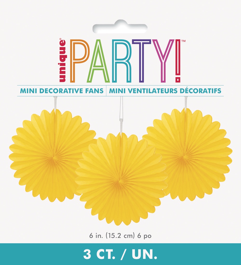 Yellow Solid 6in Tissue Paper Fans 3ct