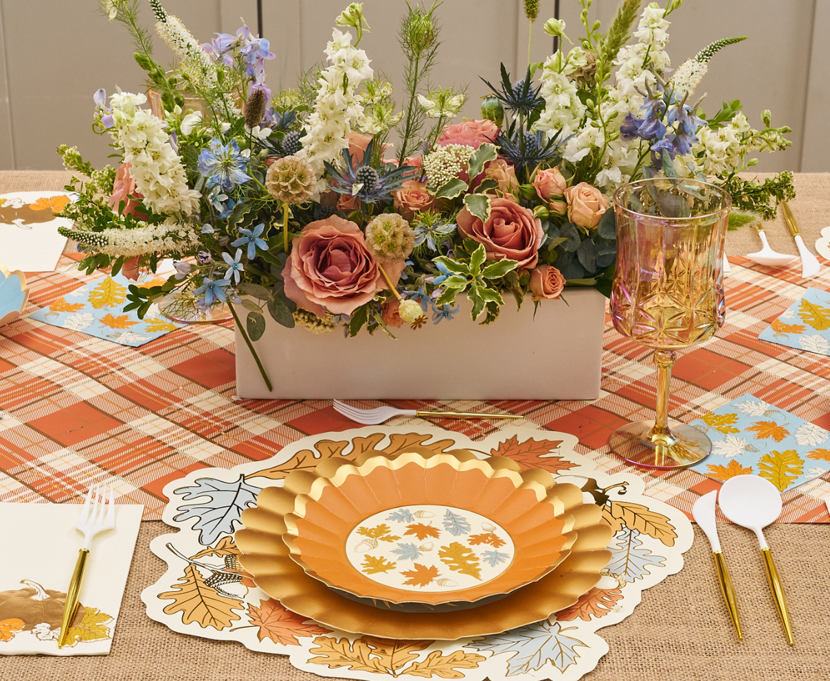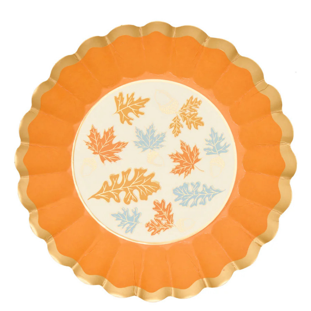 These scalloped-edge salad plates from our Gilded Harvest collection feature a delicate harvest leaf design with shimmering gold foil accents, making them a perfect complement to your autumn table setting. These plates are both durable and disposable, allowing you to skip the dirty dishes, without sacrificing quality and style. Your guests will never believe they’re disposable!