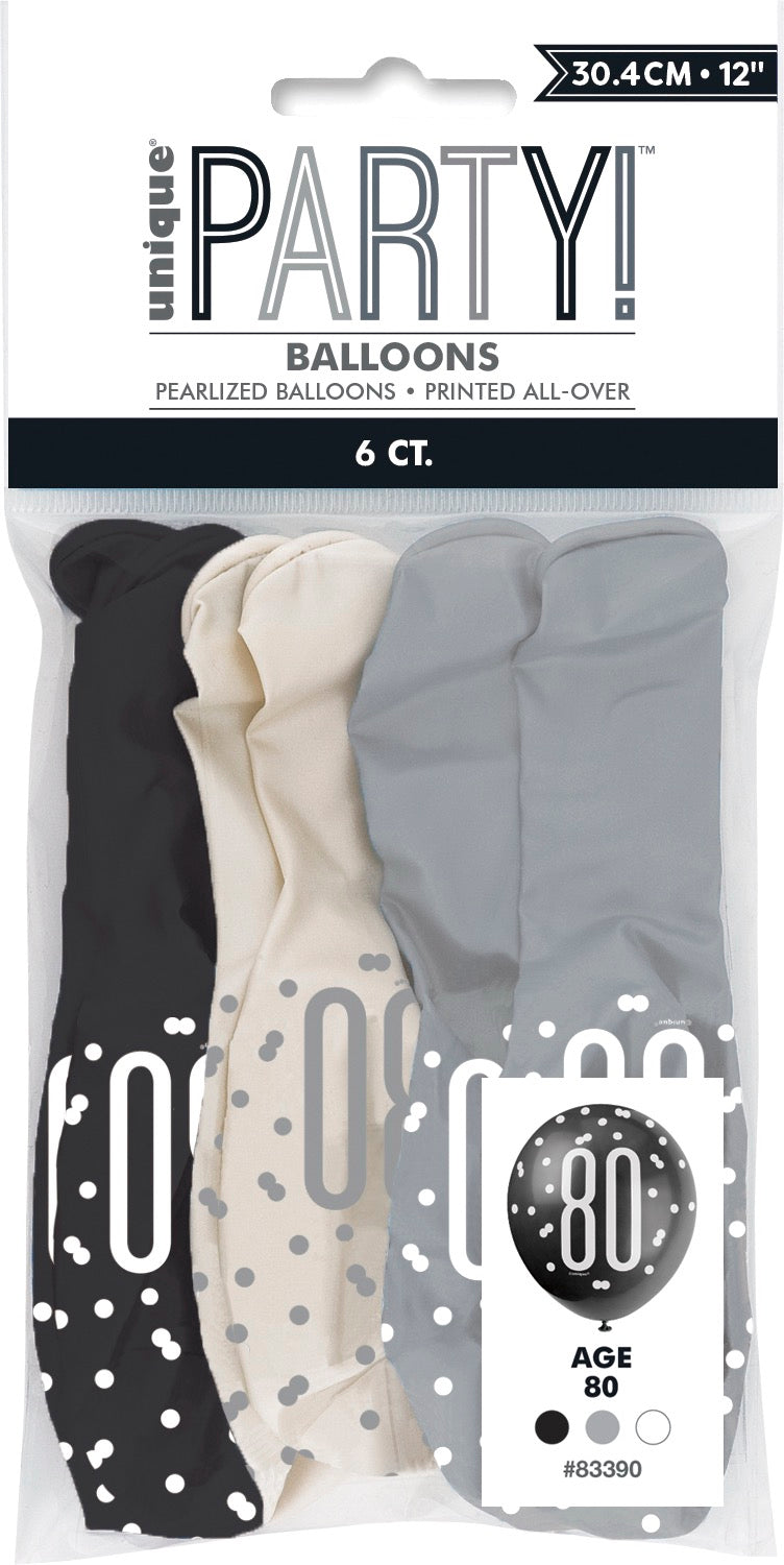 Glitz Black 12in Latex Balloons 6ct - 80