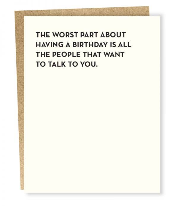 “The worst part about having a birthday is all the people that want to talk to you.”