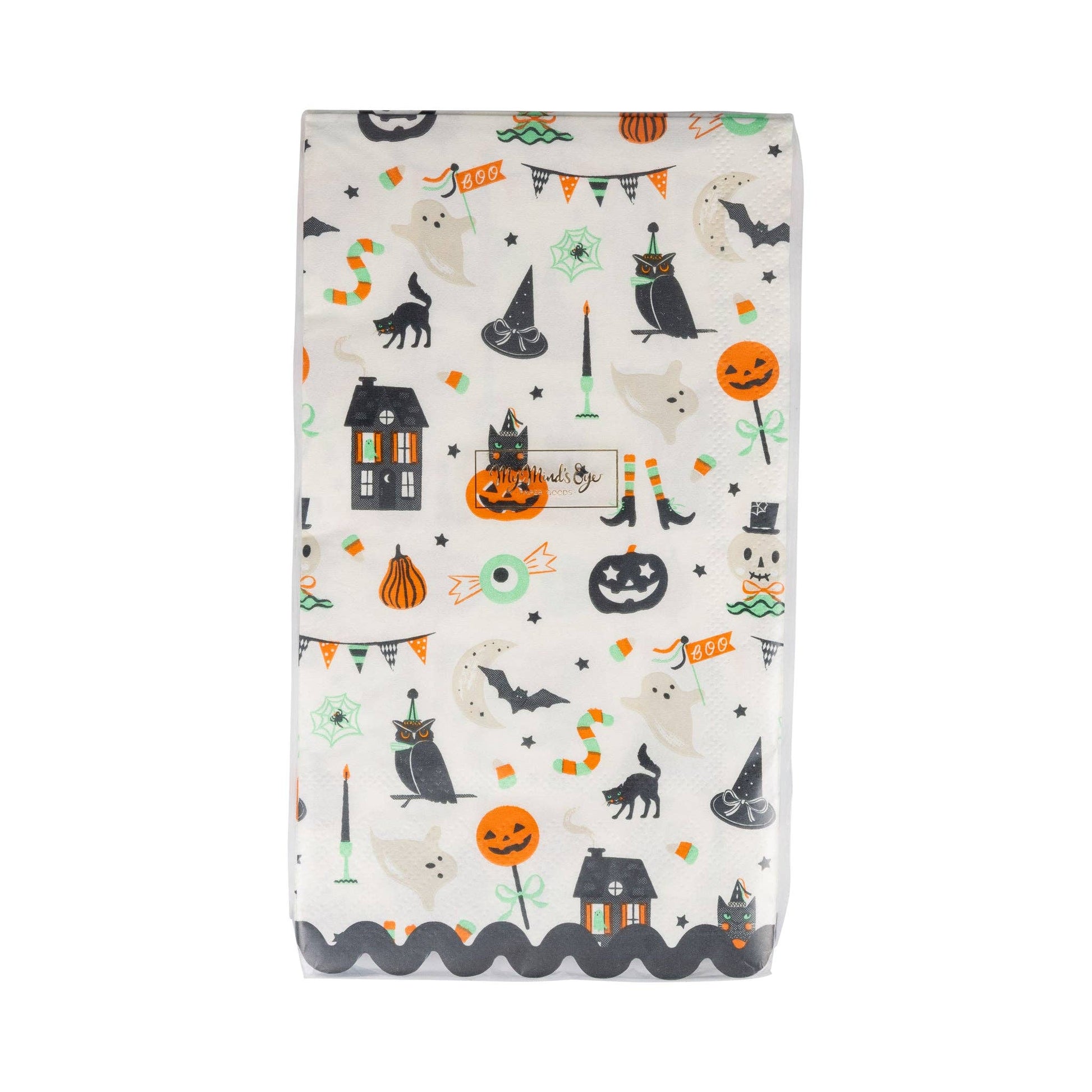 Elevate your Halloween bash with our Tricks & Treats Napkins! These festive napkins feature playful Halloween icons that add a spooky-fun vibe to your table setting. Perfect for wiping sticky candy fingers or catching cake crumbs at your monster mash. These napkins are the must-have accessory for any Halloween celebration! • includes 24 paper napkins • 4.25" x 7.75"