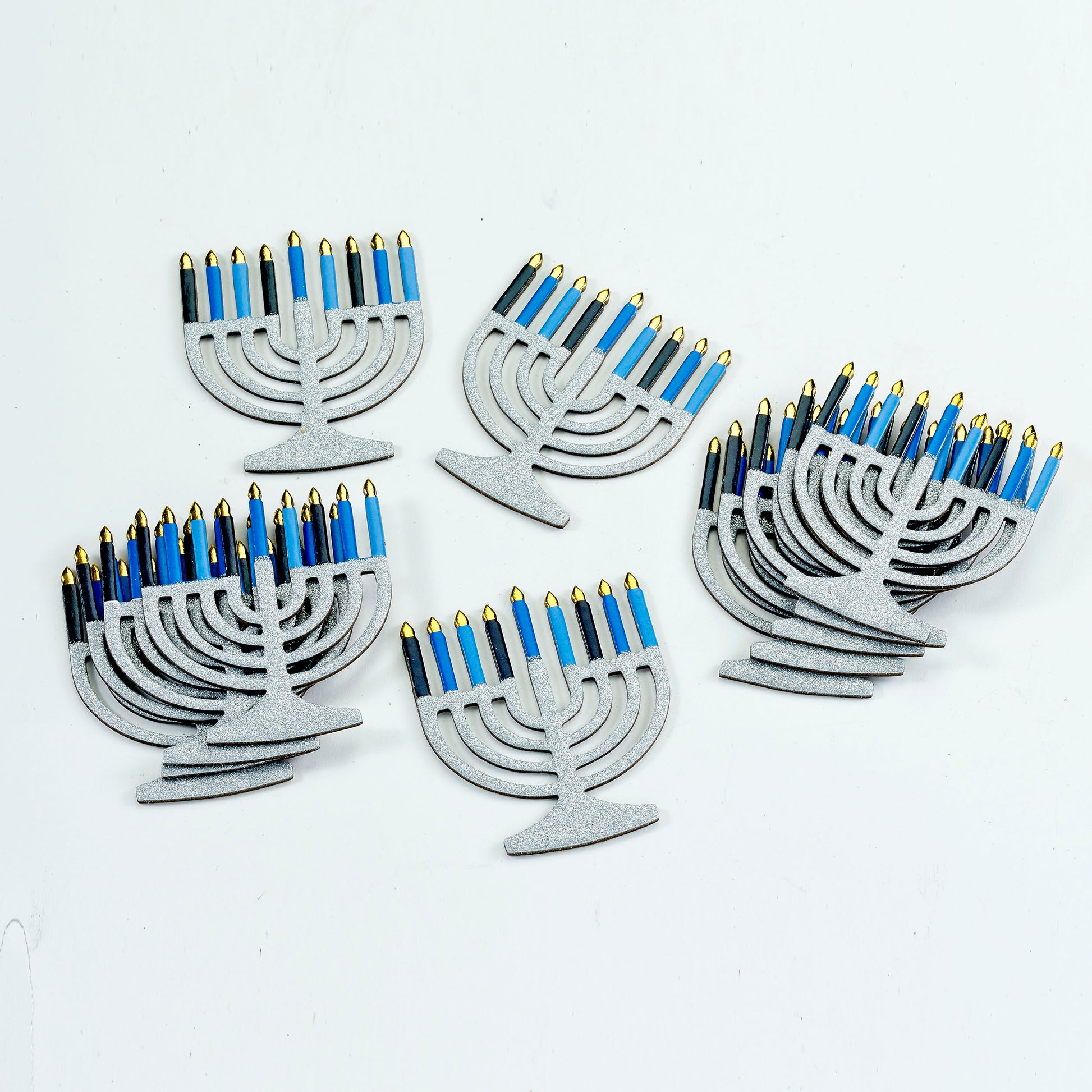Chanukah Tablescatters, 12 Foiled & Glittered Menorahs
