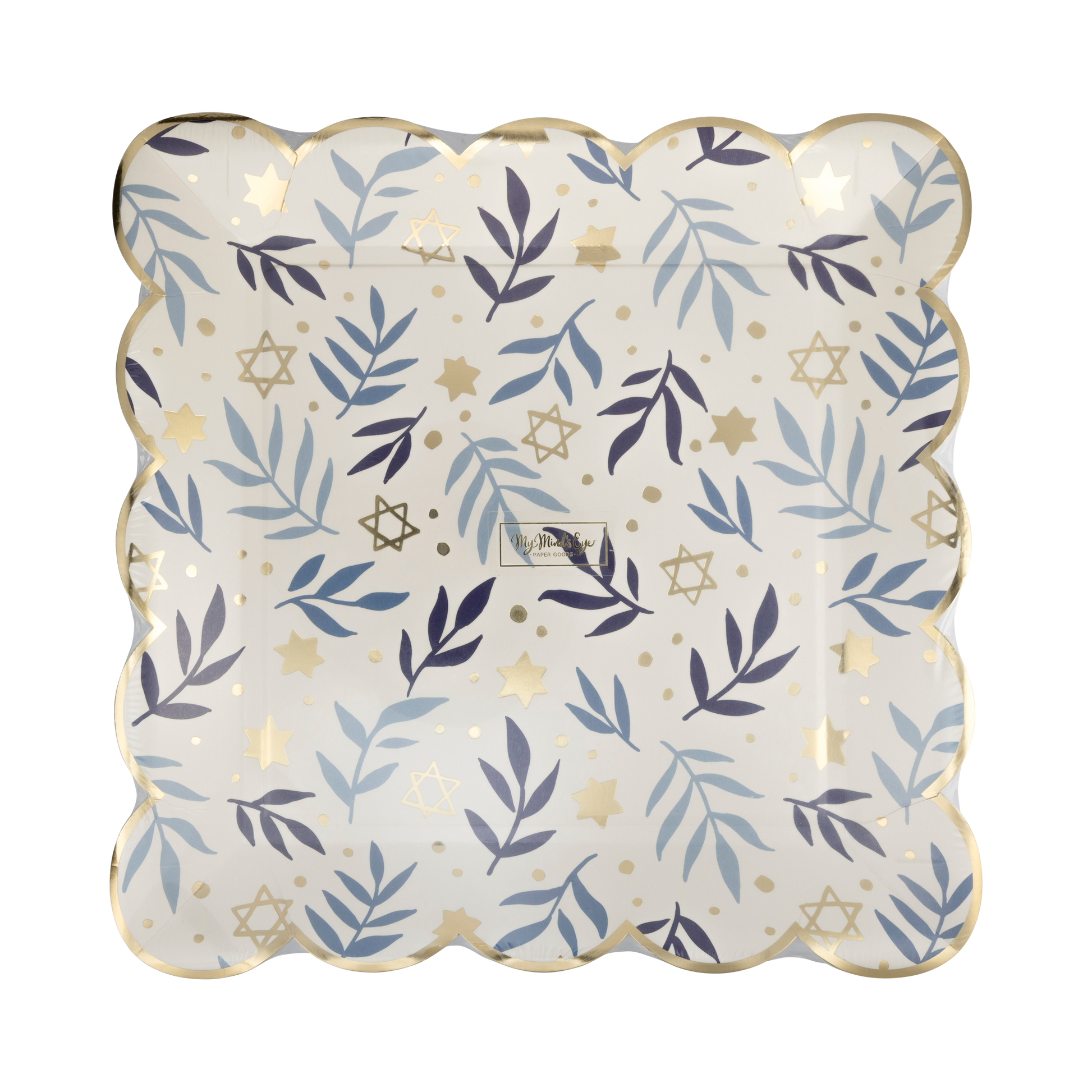 Add a touch of whimsy to your Hanukkah celebrations with this Stars & Branches Scalloped Square Plate. Featuring a playful Hanukkah plate pattern, this charming plate will add a festive and unique touch to your holiday table.