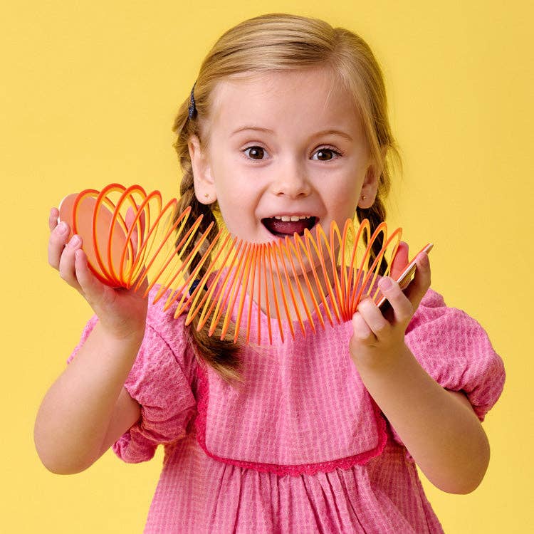 This coil spring toy is an old favorite that still walks the walk! Springie thingie climbs down the stairs with a gentle push, or can be a fun challenge for dexterity. 3 assorted, snackable characters with double-color springs and capped ends: pizza, donut, and kiwi.ABS, PVCFSC CDU / color box9, assorteddia. 3 x 2.25 3.25 x 2.5 x 3.25 10 x 9.5 x 10