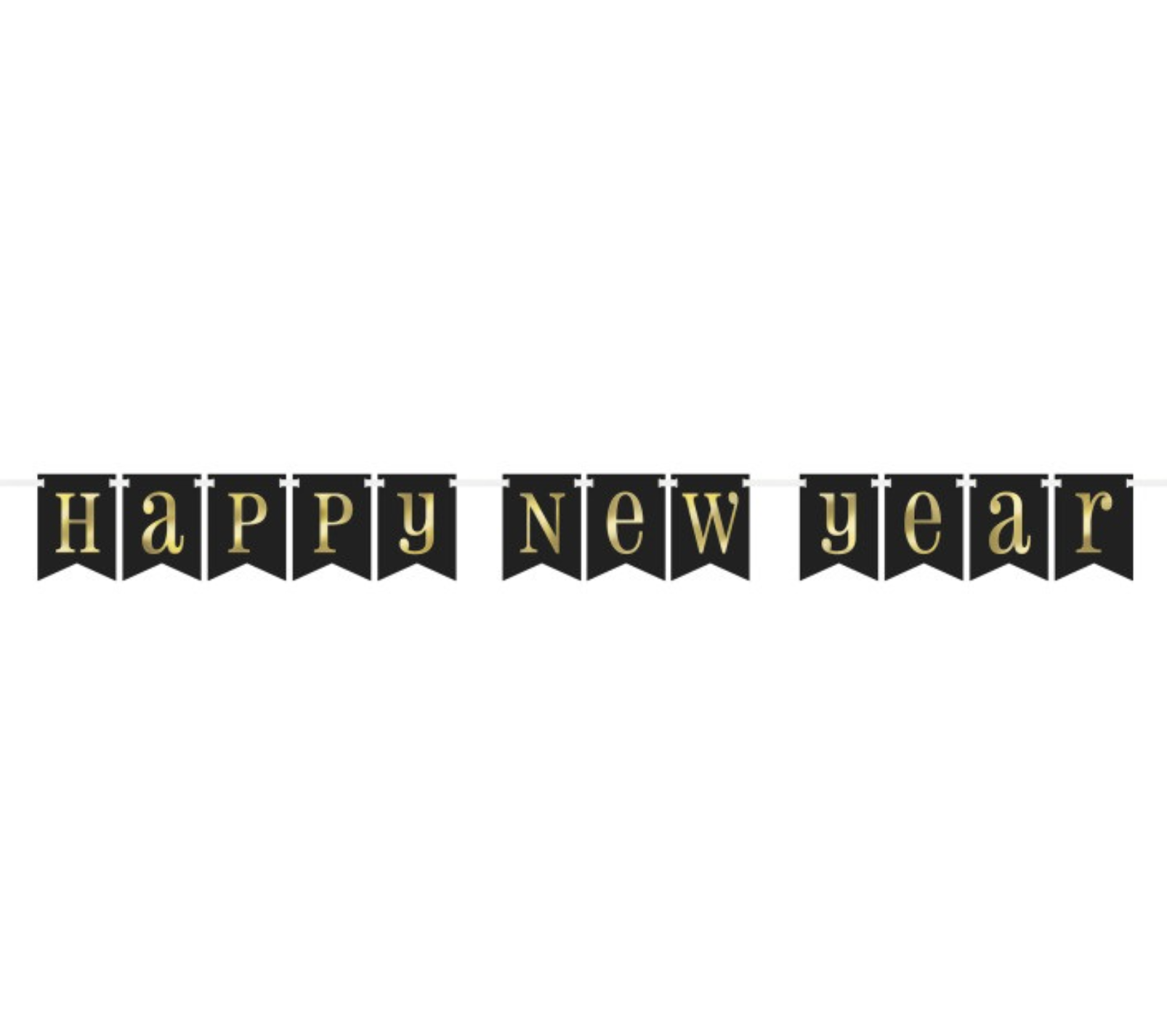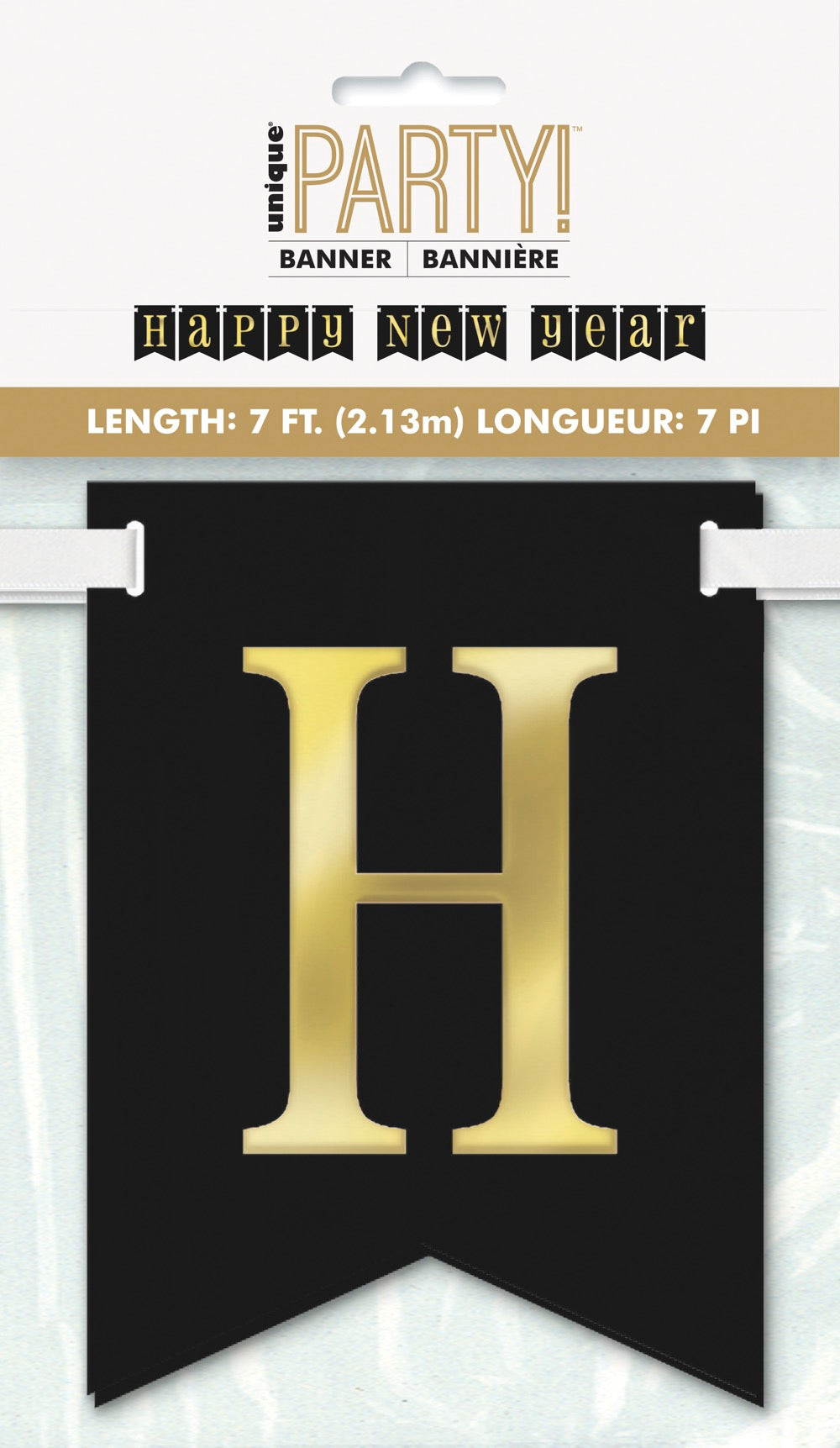 Foil Gold & Black Happy New Year Pennant Banner 7 ft