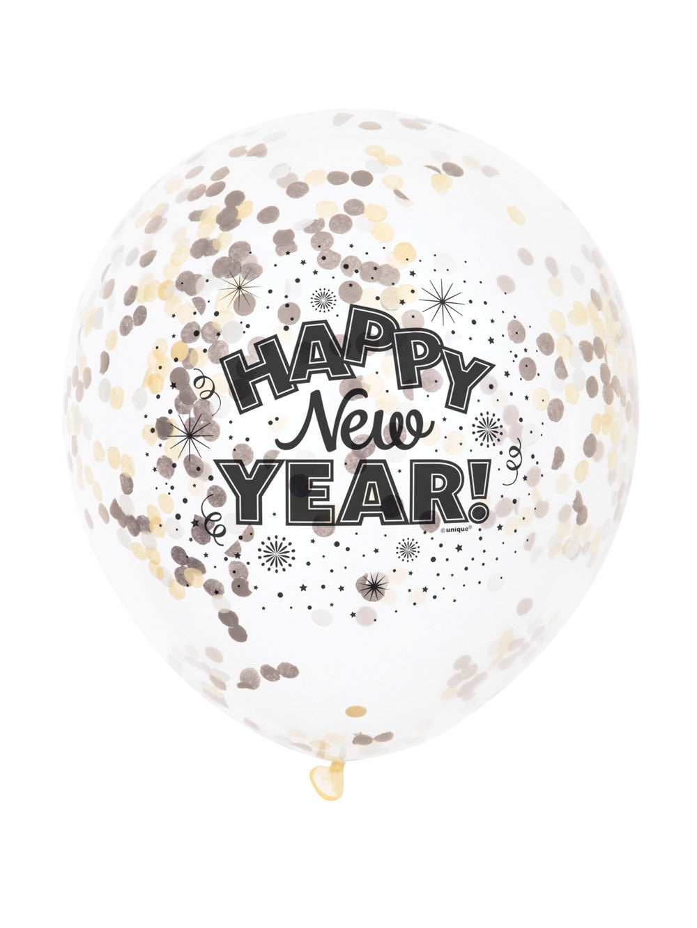 Happy New Year Clear 12in Latex Balloons with Pre-Filled Confetti 6ct - Pre-Filled