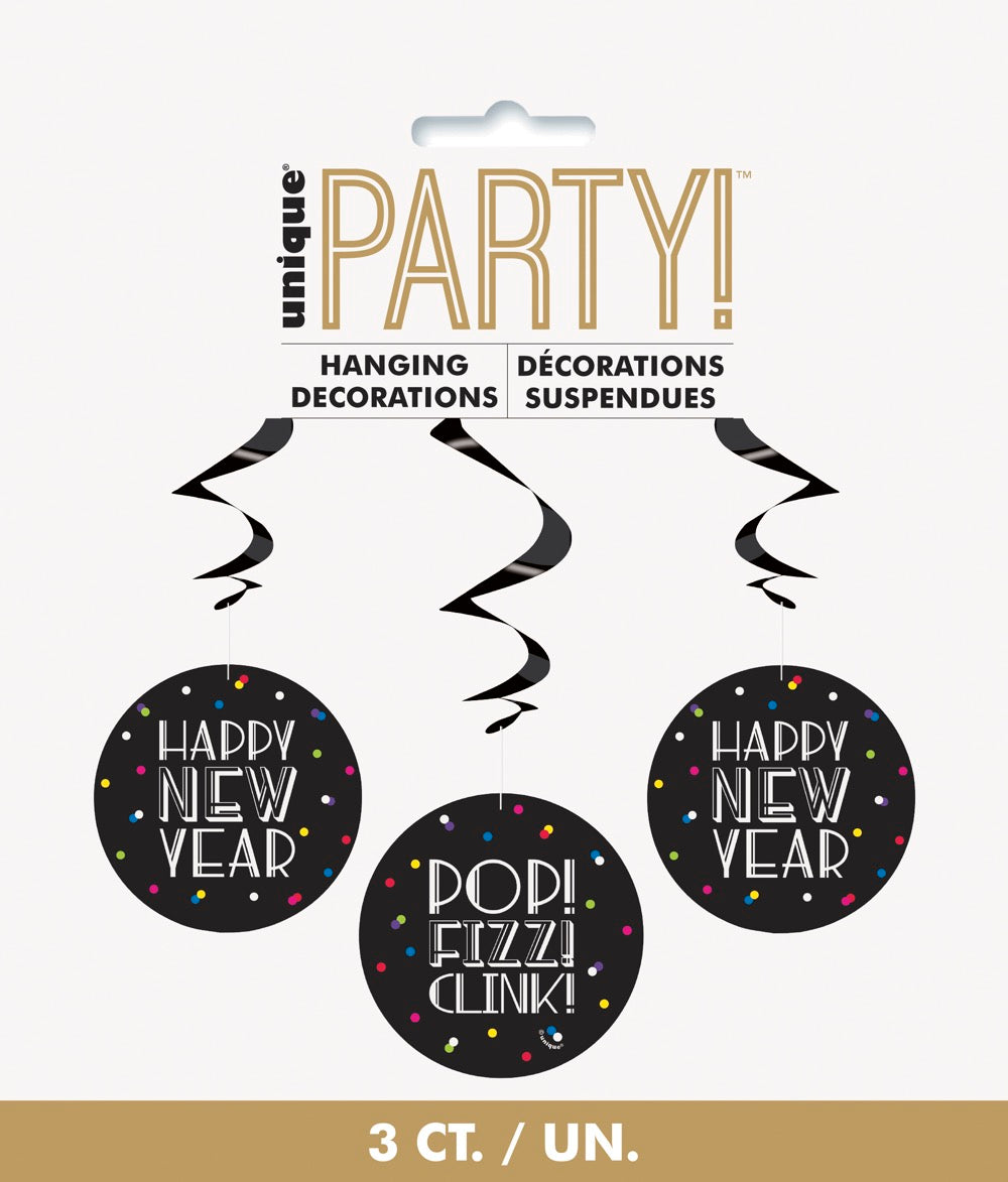 Neon Dots New Years 26in Hanging Swirl Decorations 3ct