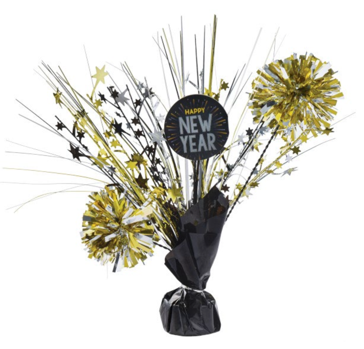 NYE Mini Tinsel Burst Centerpiece - Black, Silver, Gold