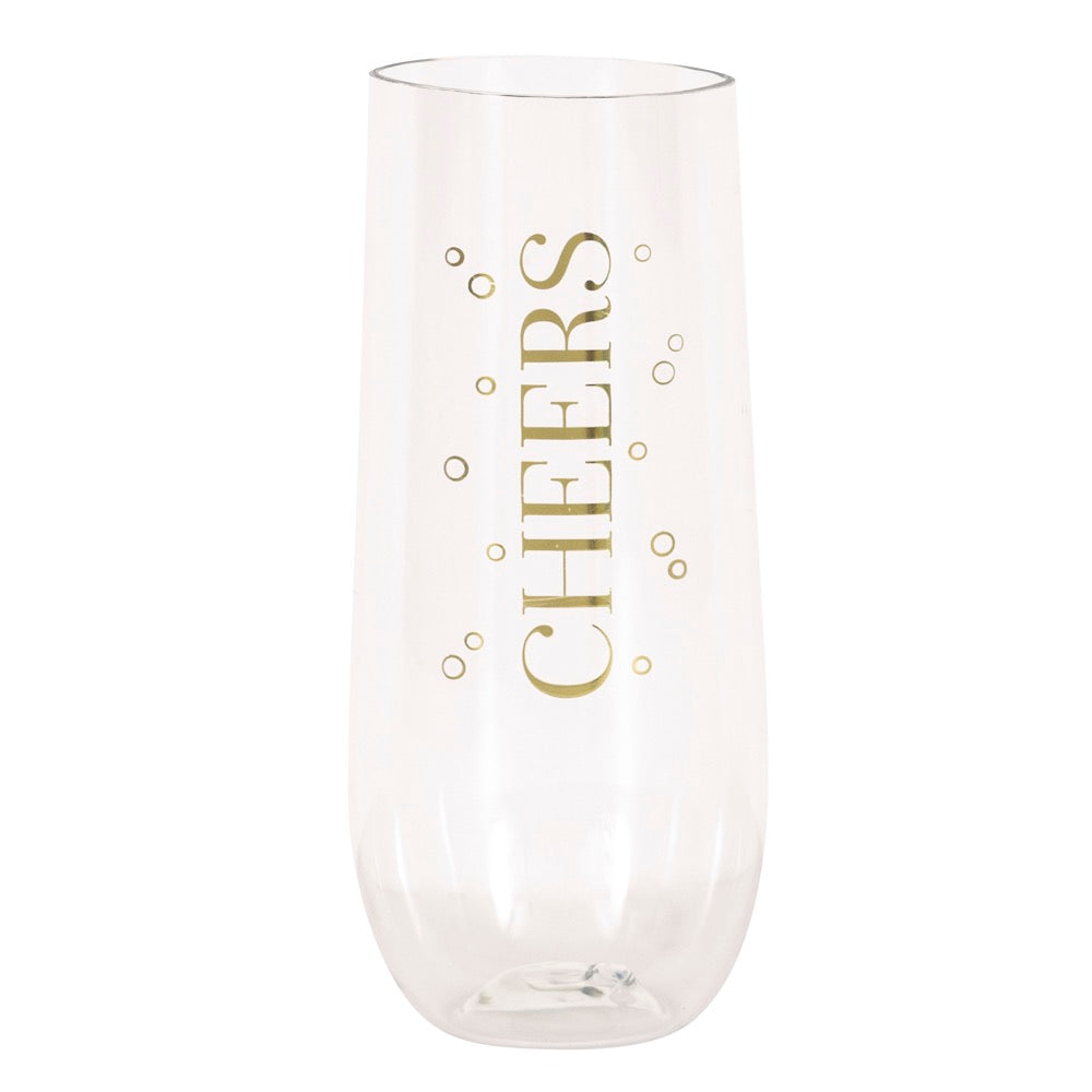Foil Stamping Cheers Plastic Stemless Champagne Flute