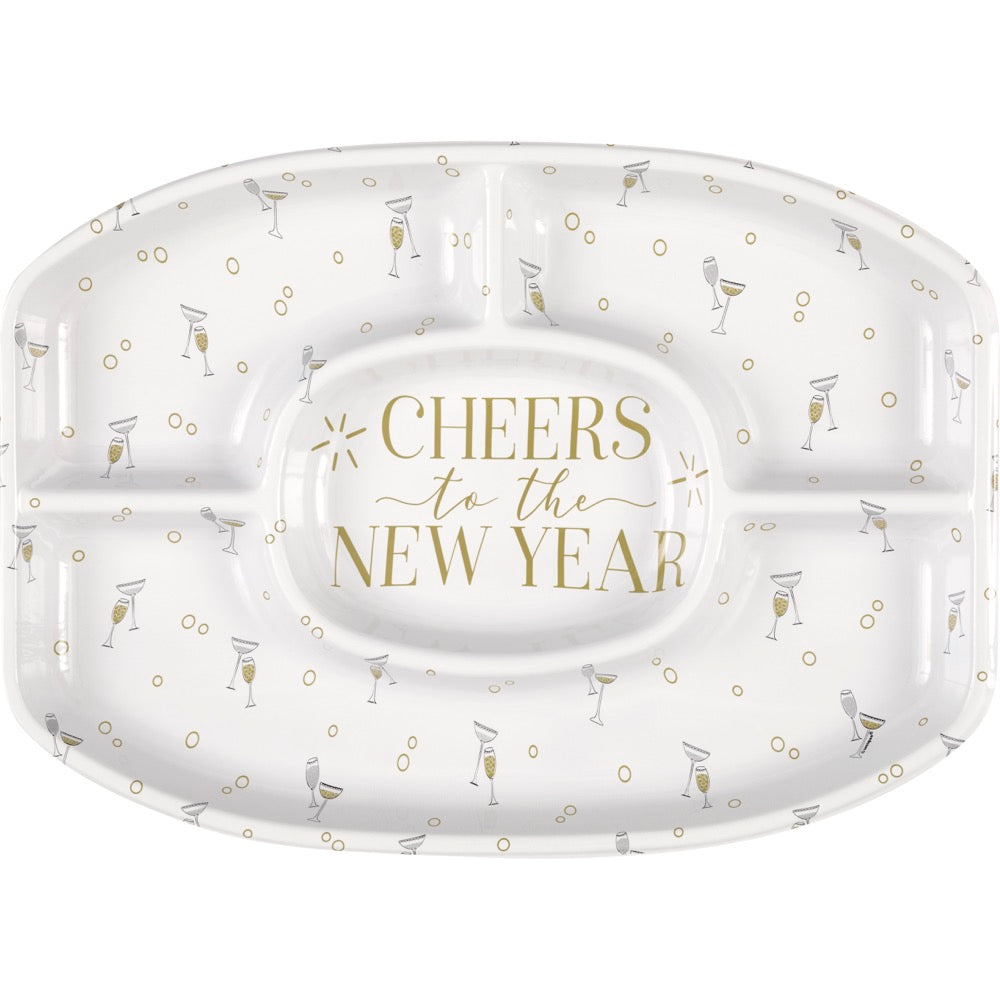 Toast to New Years Reusable Plastic Chip & Dip Platter