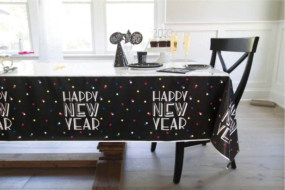 Neon Dots New Years Rectangular Plastic Table Cover 54 x 84