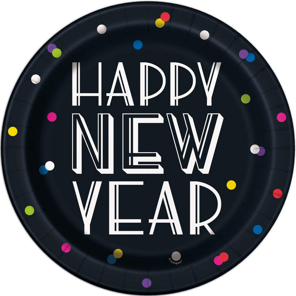 Neon Dots New Years Round 9in Dinner Plates 8ct