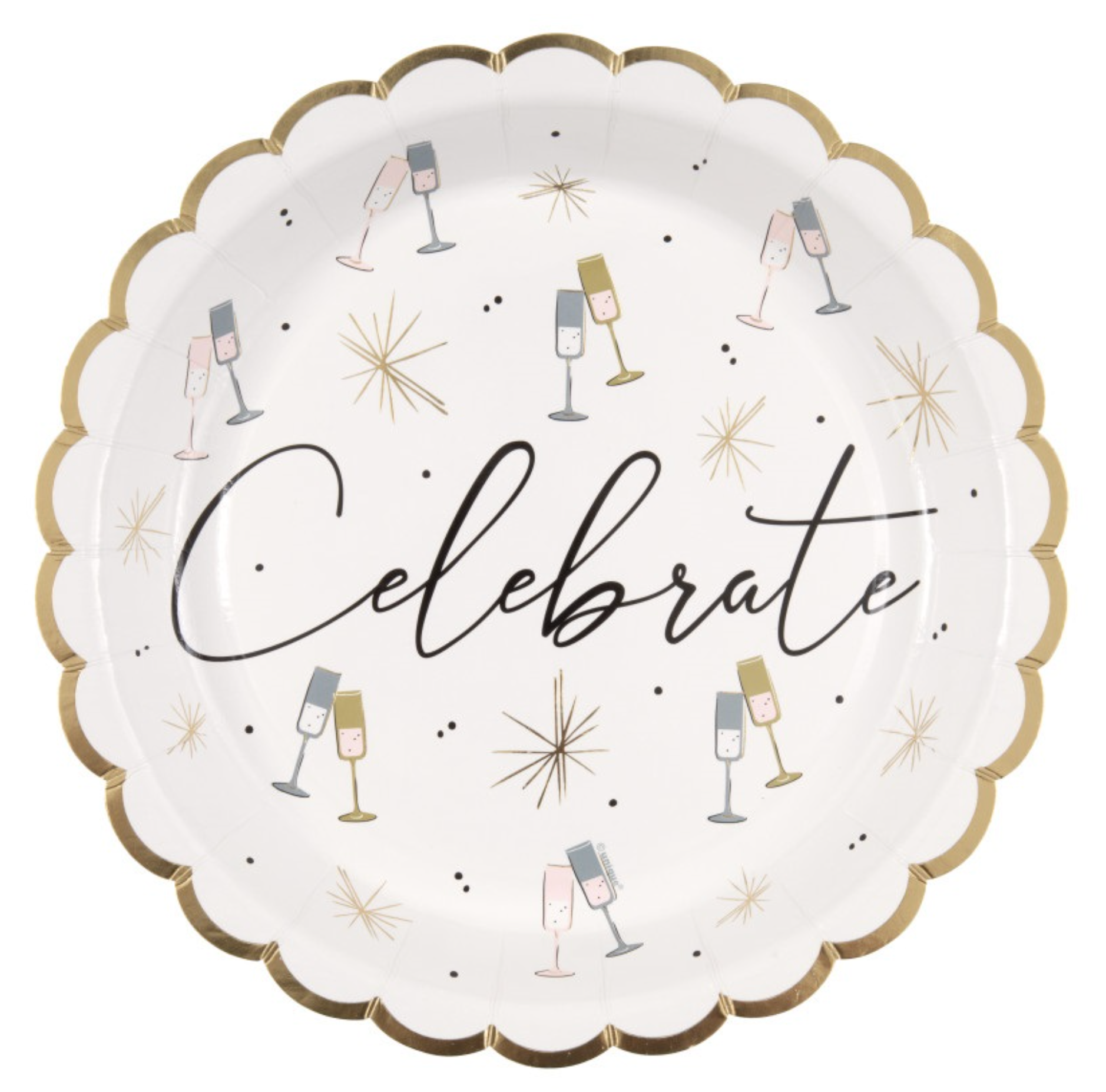 Toasting New Years Celebrate Scalloped Edge Round Foil 9in Dinner Plate 8ct