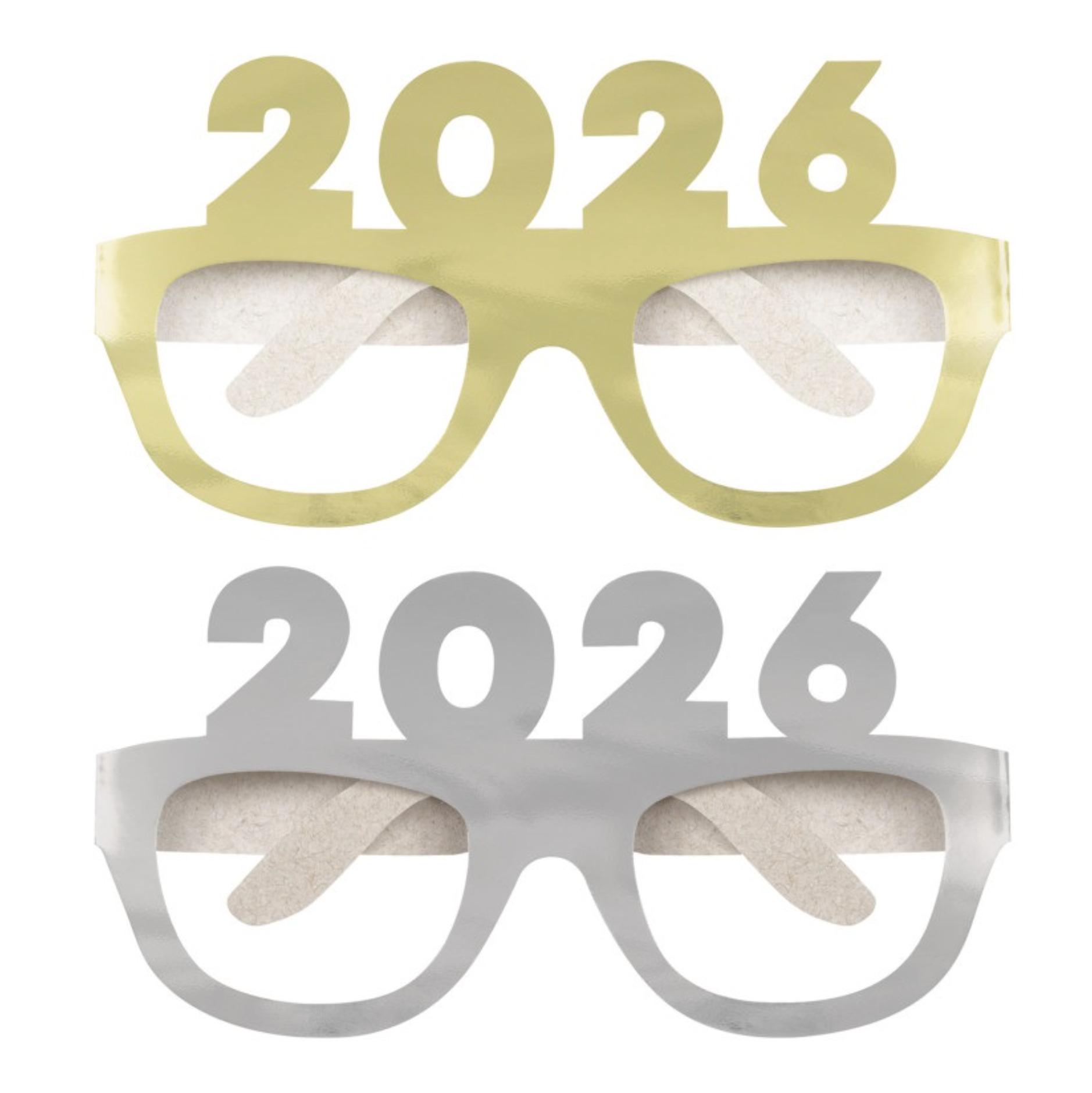 2026 Gold & Silver Foil Board Novelty Glasses 4ct