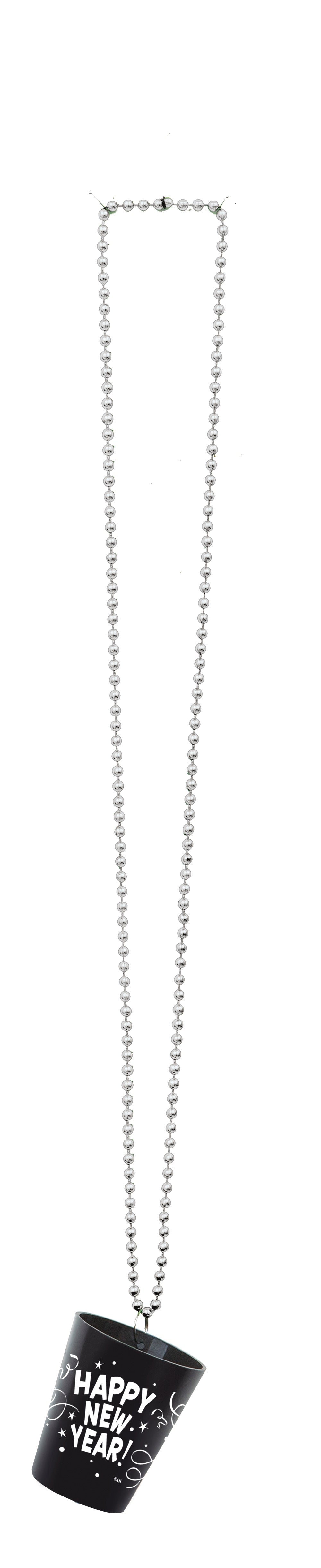 New Years Bead Necklace with Shot Glass - 1 Assorted Color