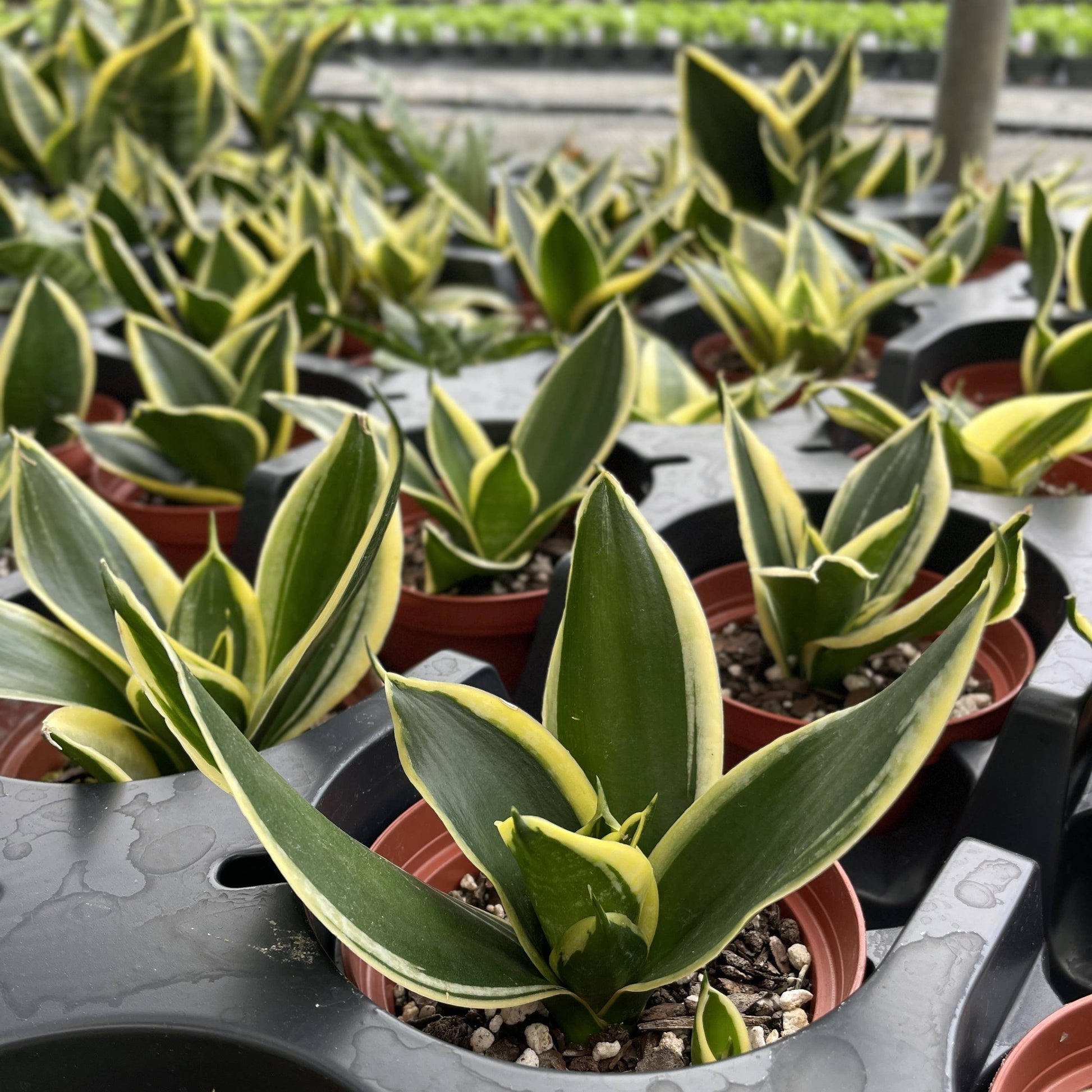 Bird's Nest Snake Plants are compact varieties of the ever popular snake plant. Snake plants are one of the easiest plants to care for, and can go for over a month without water or sunlight! Varieties received will be assorted based on availability. Please message with requests. Botanical Name: Dracaena trifasciata. Thrives in medium sunlight. Can adapt to low light, but growth will slow. This plant will arrive in a plastic growers pot with drainage holes. Pot color may vary.