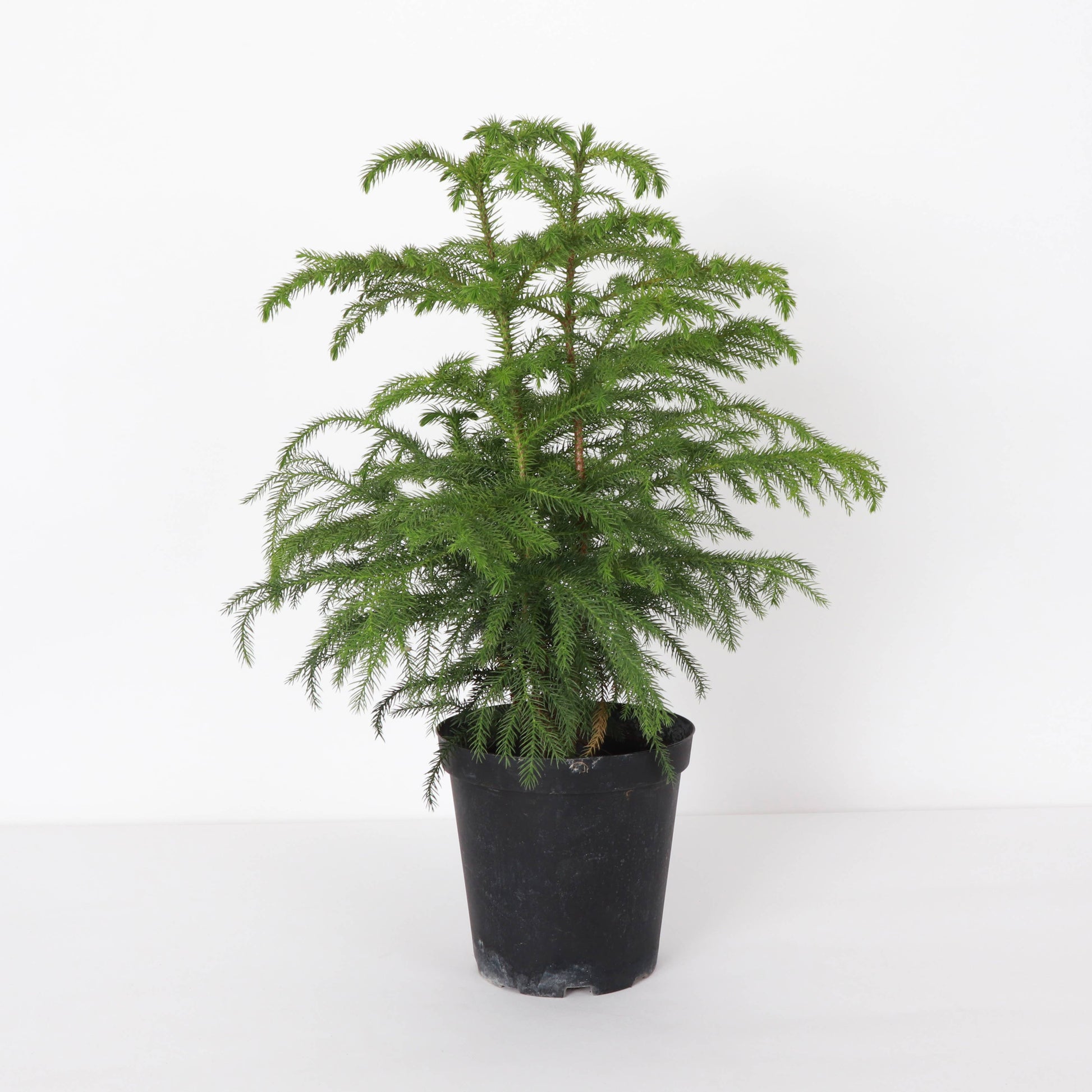 Norfolk Island Pine is a year-round Christmas Tree! This tropical pine is great for bringing holiday spirit into a small space, or given as gift to a holiday hostess. Plus this plant thrives indoors year-round. Norfolk Island Pines are not true pines, and prefer warm & humid conditions. Botanical Name: Araucaria heterophylla. Thrives in medium to indirect bright sunlight. This plant will arrive in a plastic growers pot with drainage holes.