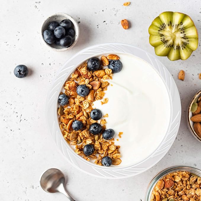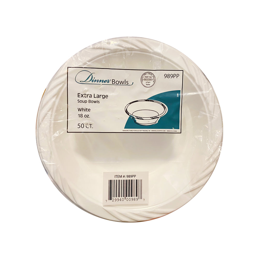 These 18oz white plastic bowls come in a convenient pack of 100. Made of durable plastic material, they are perfect for any event or gathering. Their size makes them ideal for serving snacks, desserts, or soup. Save time on clean up and enjoy the convenience of disposable bowls.