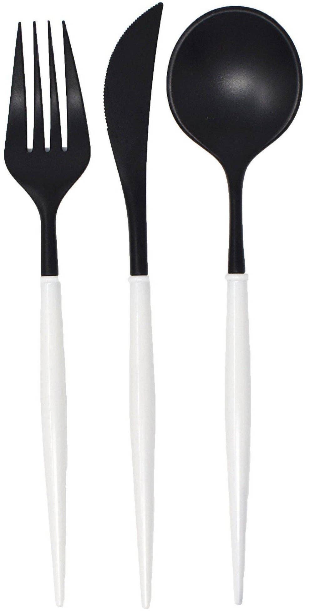 Black and White Bella Assorted Plastic Cutlery/24pc, Service for 8