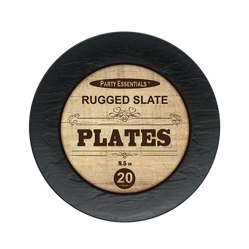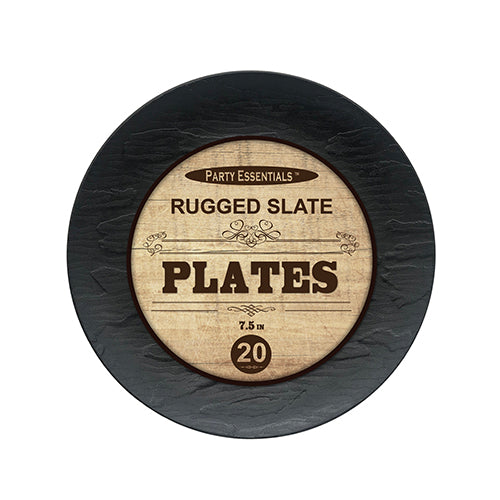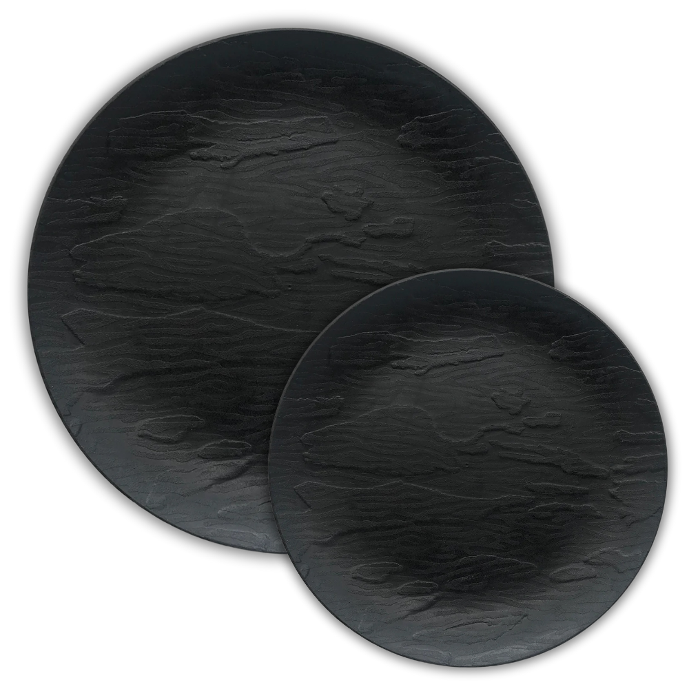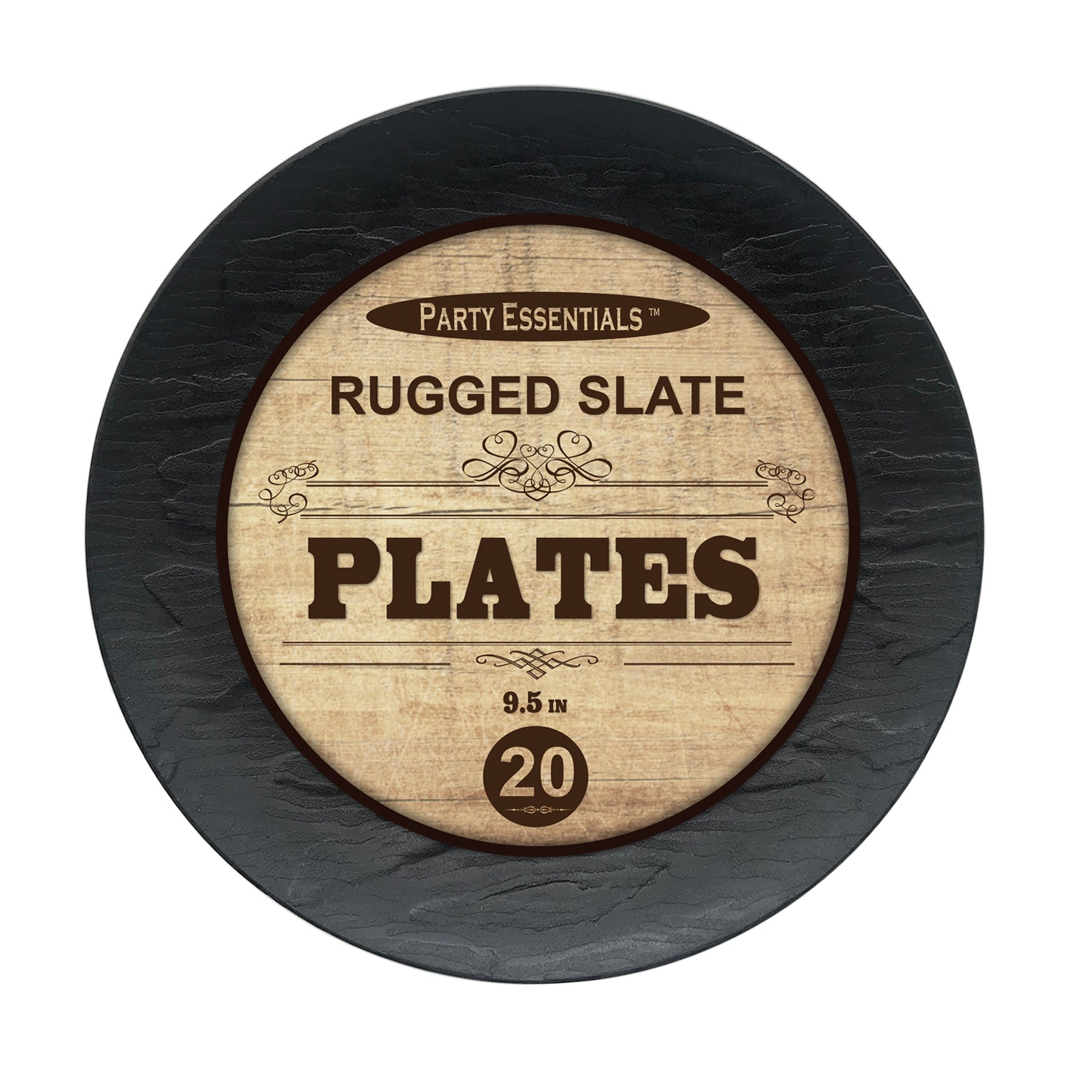 Experience the rustic and earthy beauty of our Black Rugged Slate Plates. Made with durable faux slate, these plates add a touch of elegance to any event. Plus, with their hand washable and re-usable design, you can enjoy them time and time again. Perfect for adding an upscale touch to your table setting.