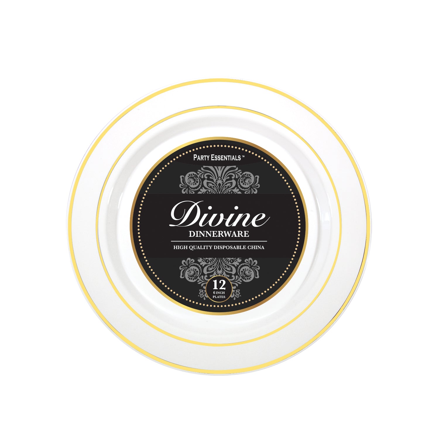White Premium Plastic Plates & Bowls With Gold Rim 12ct
