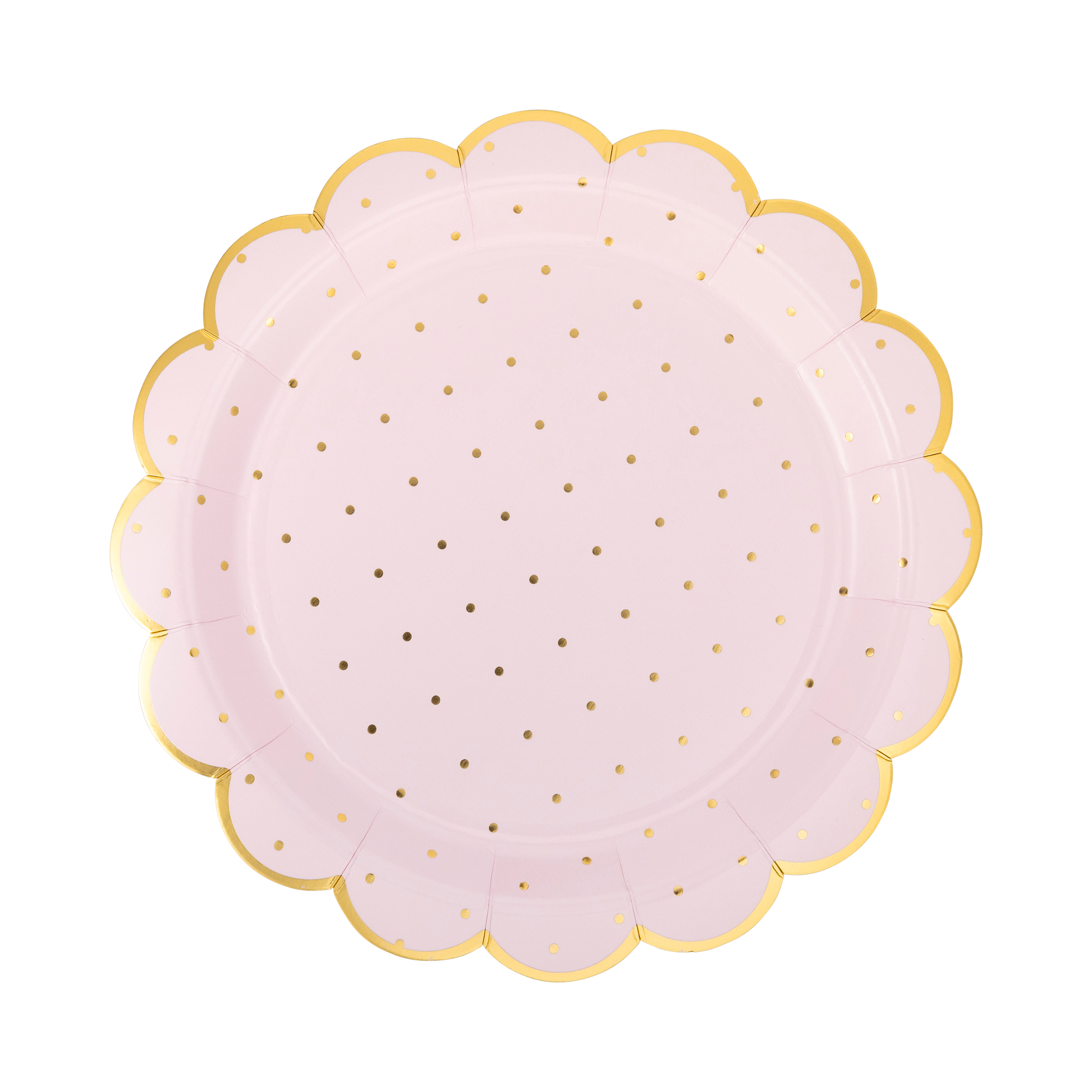 Add a touch of elegance to your princess party with our Princess Dot Plate. The pink gold foil polka dots will make your table shine like royalty! • includes 8 paper plates • 9 x 9 inches • gold foil