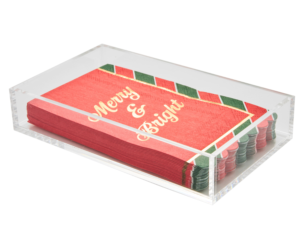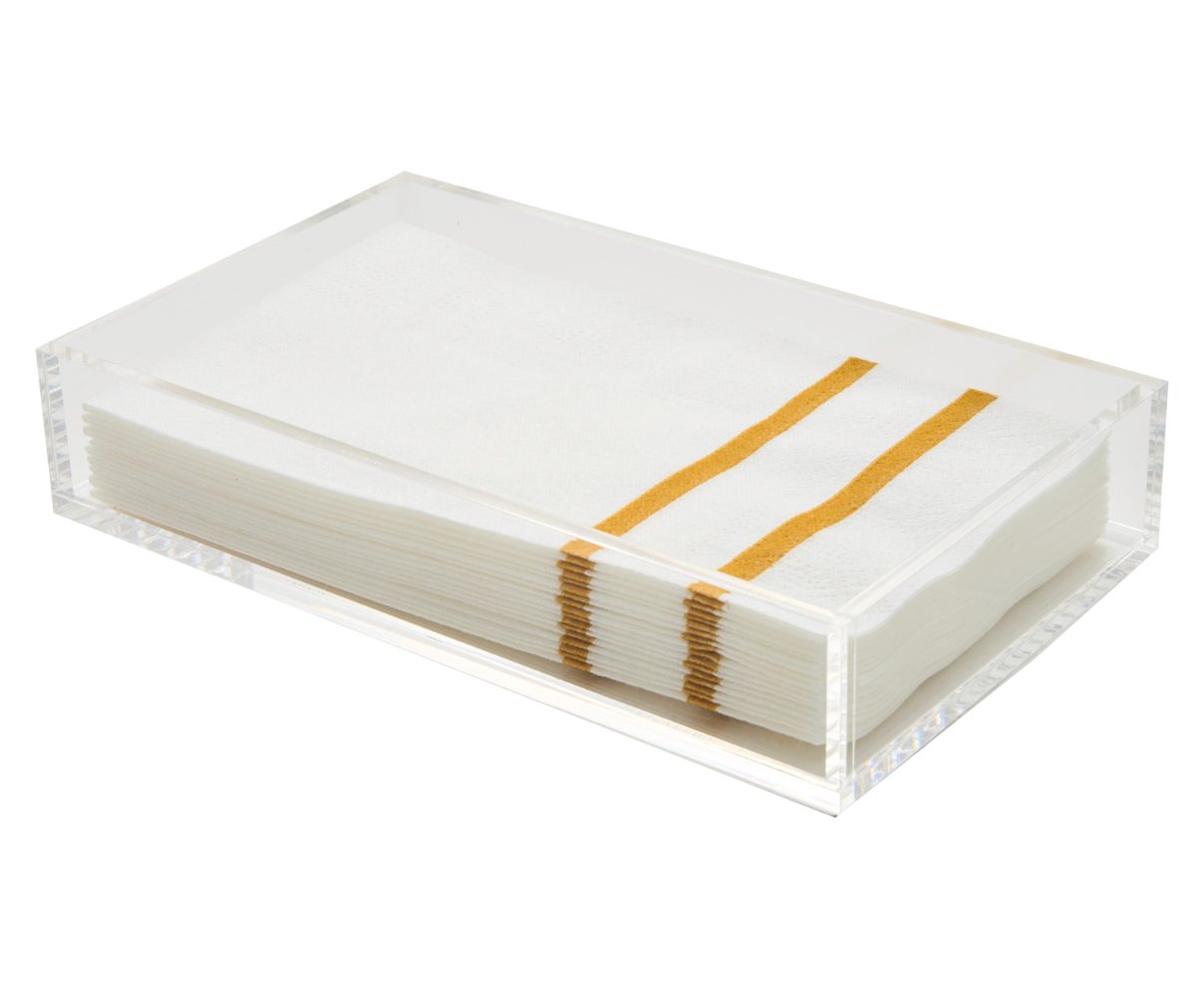 Keep things clean and classy with our Acrylic Guest Towel Tray. Crafted from durable, crystal-clear acrylic, this tray is perfectly sized to hold standard guest towel napkins, making it a stylish addition to your bathroom, powder room, or buffet table. Its sleek, modern design complements any décor while keeping your napkins neatly in place.