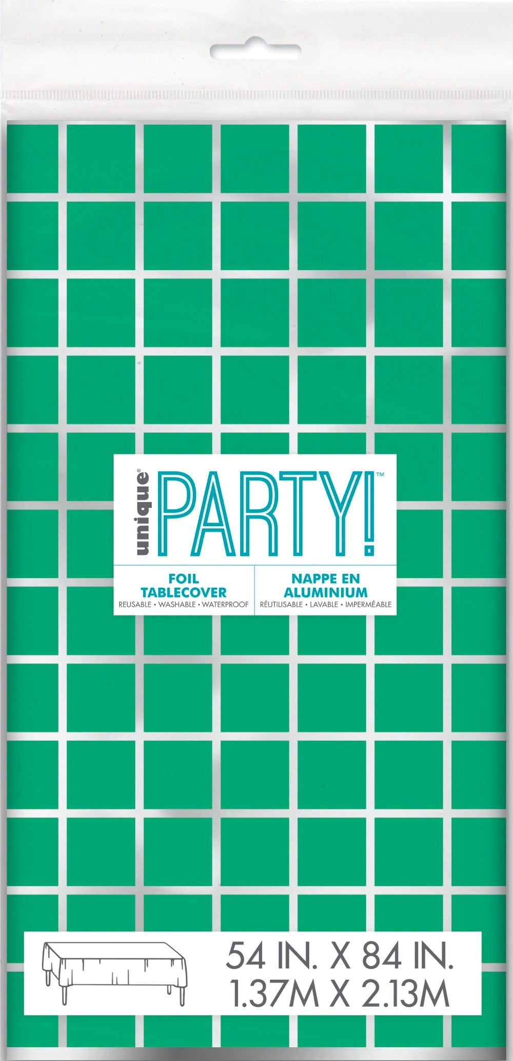 Silver & Bright Green Rectangular Foil Table Cover 54in x 84in