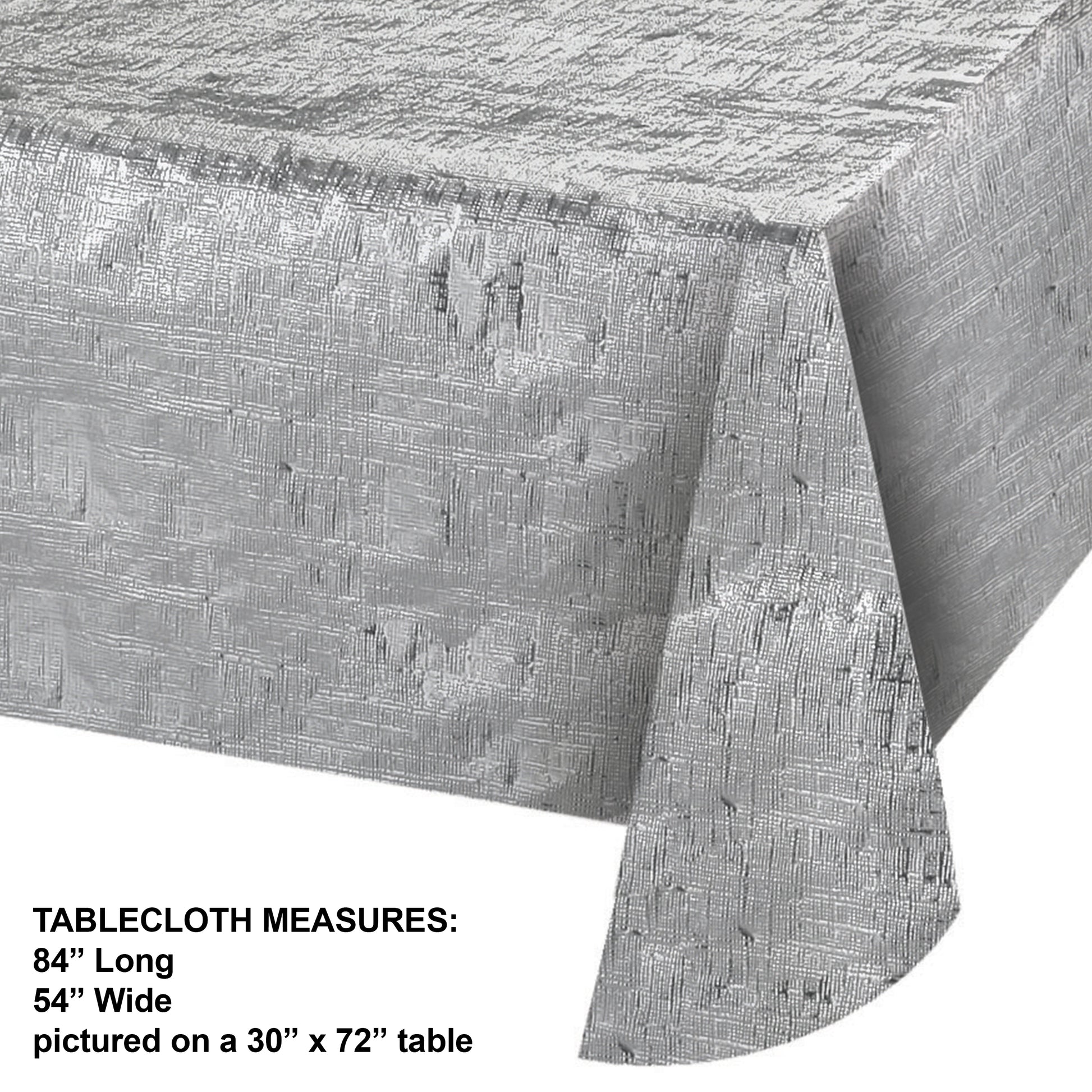 Silver Metallic Rectangular Plastic Table Cover 54in x 84in