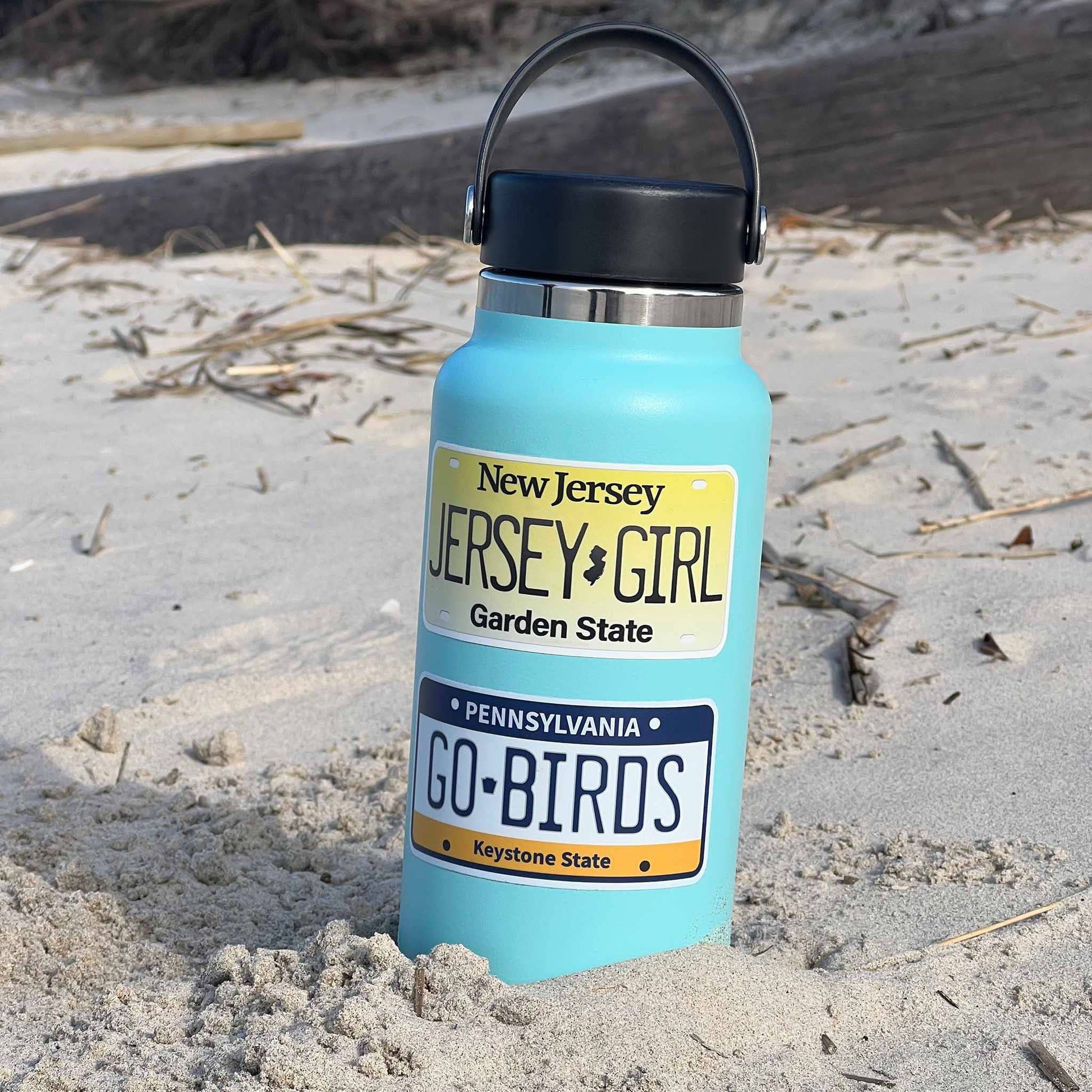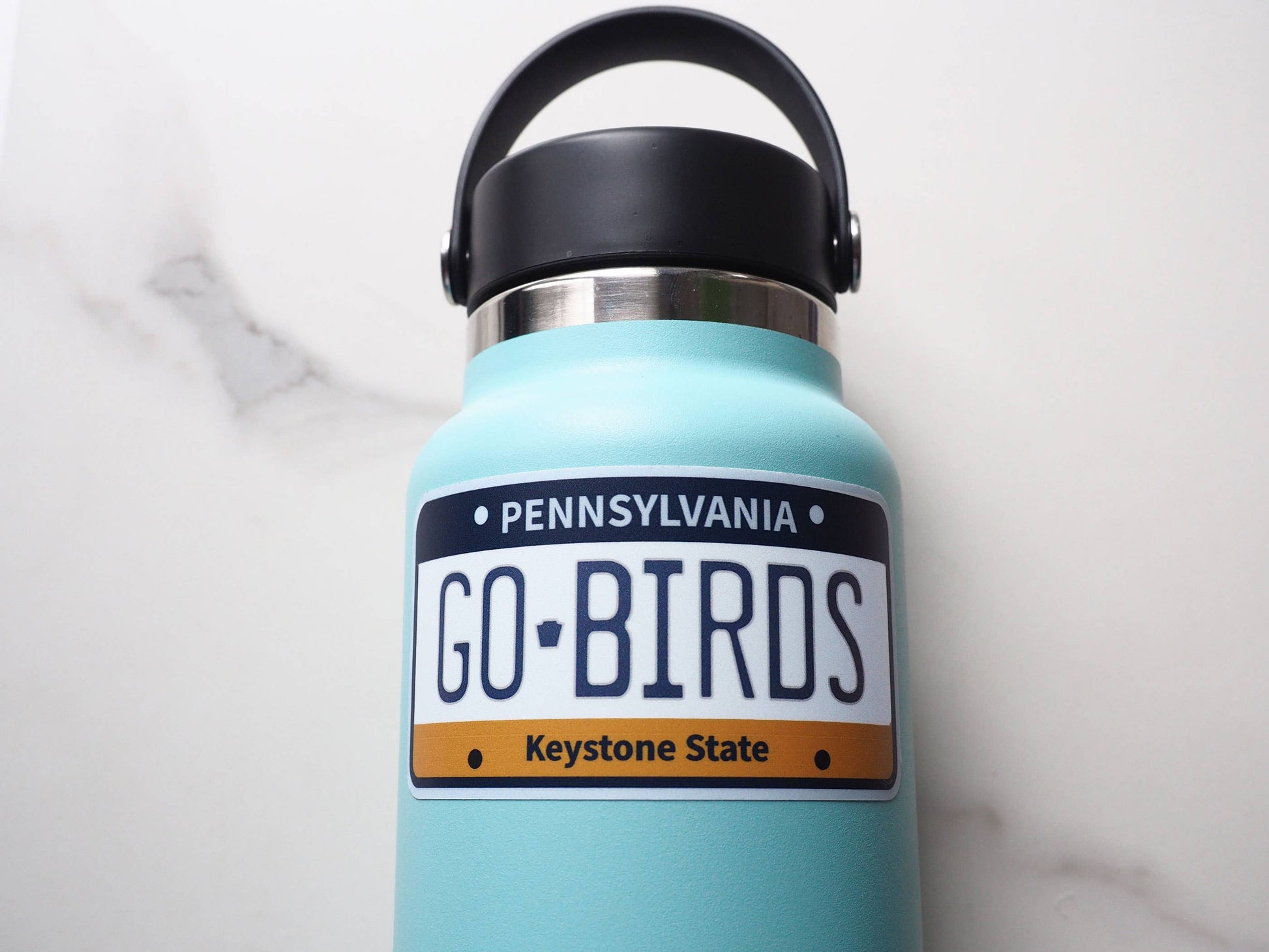 Go Birds! Philadelphia Eagles Pennsylvania License Plate Sticker, 4" wide laptop decal or small bumper sticker size. Waterproof & weatherproof vinyl decal with a matte UV-resistant finish for years of adventure indoors & outdoors. Made in USA.