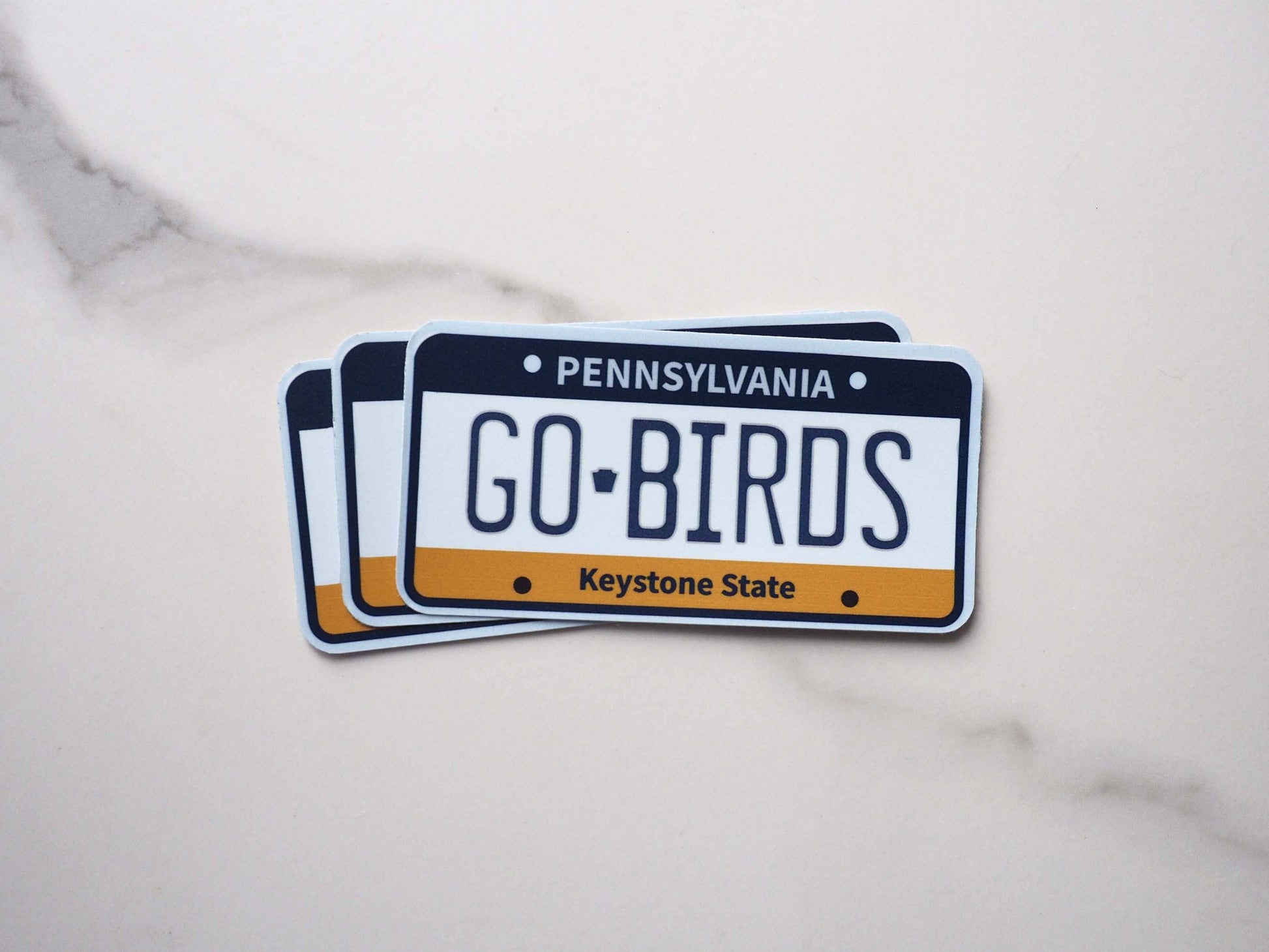 Philadelphia's beloved NFL football team is the Eagles...known affectionately as the Birds. If you're a die-hard Eagles fan, this PA sticker is for you. Based on the iconic Pennsylvania license plate design and color scheme.