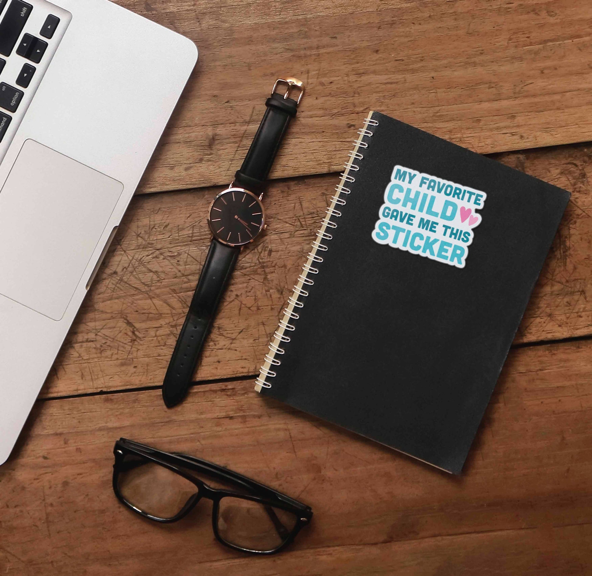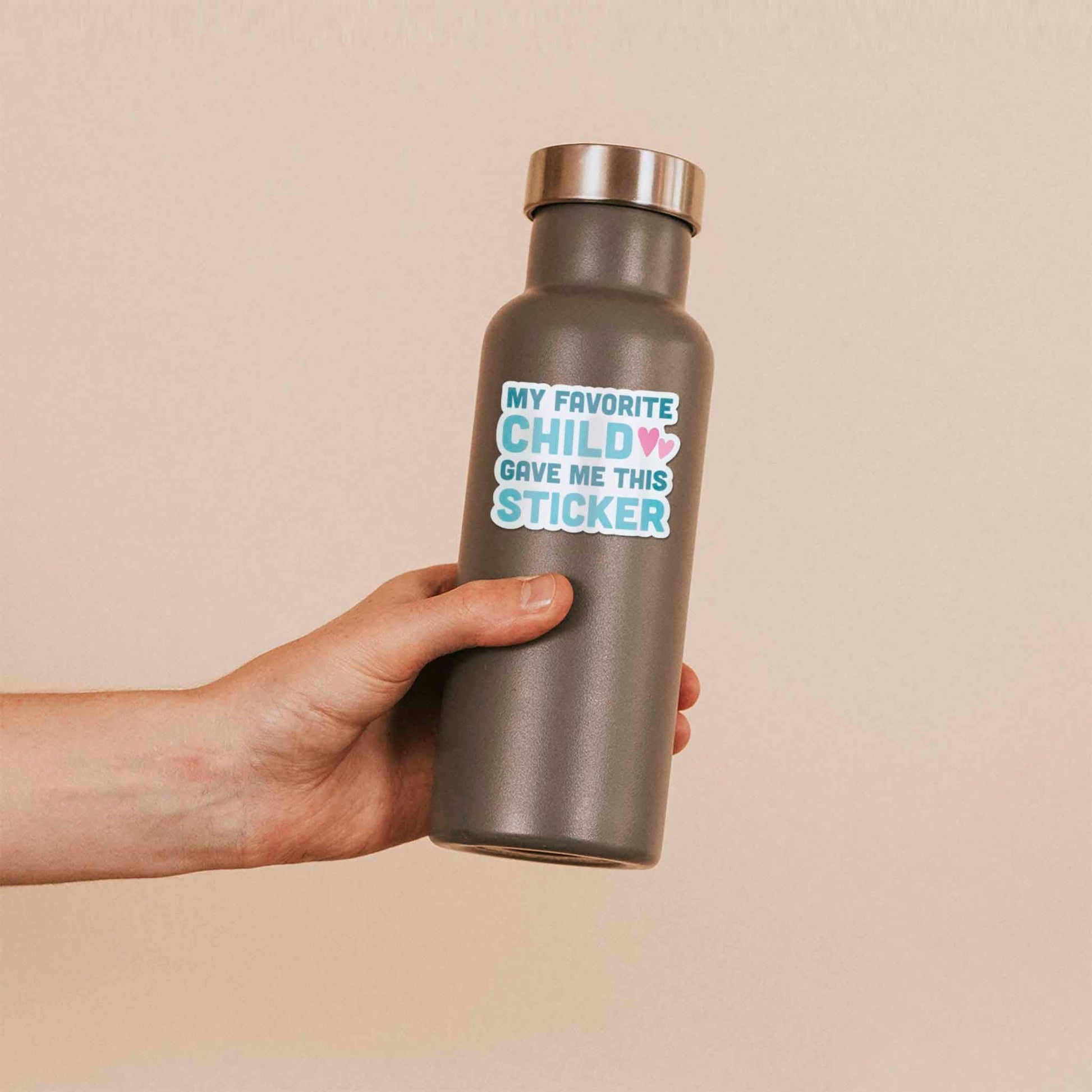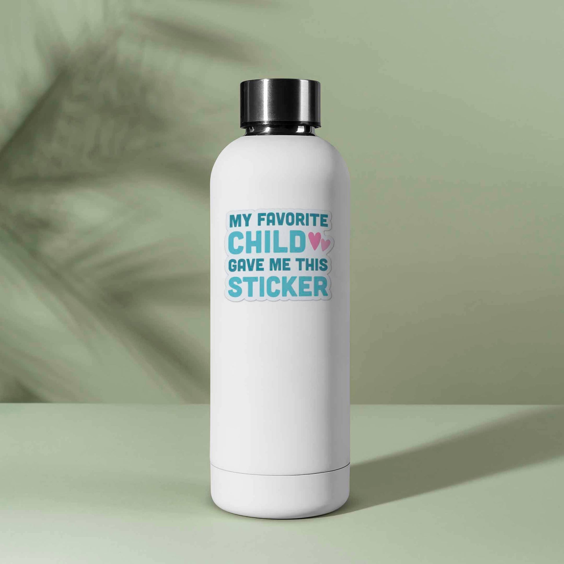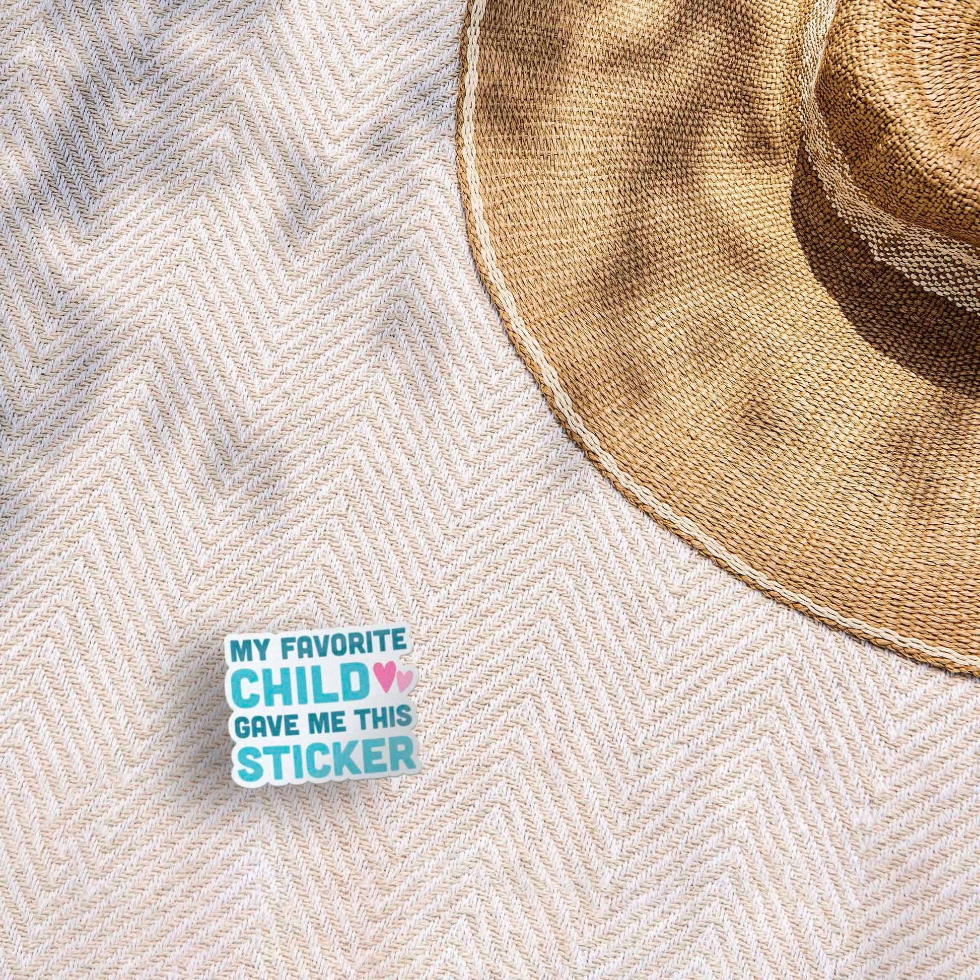 My Favorite Child Gave Me This Sticker, 2.75" wide tumbler or laptop decal size. Durable die-cut vinyl decal w/ matte UV-resistant coating. Waterproof & weatherproof for indoor & outdoor use. Made in USA.