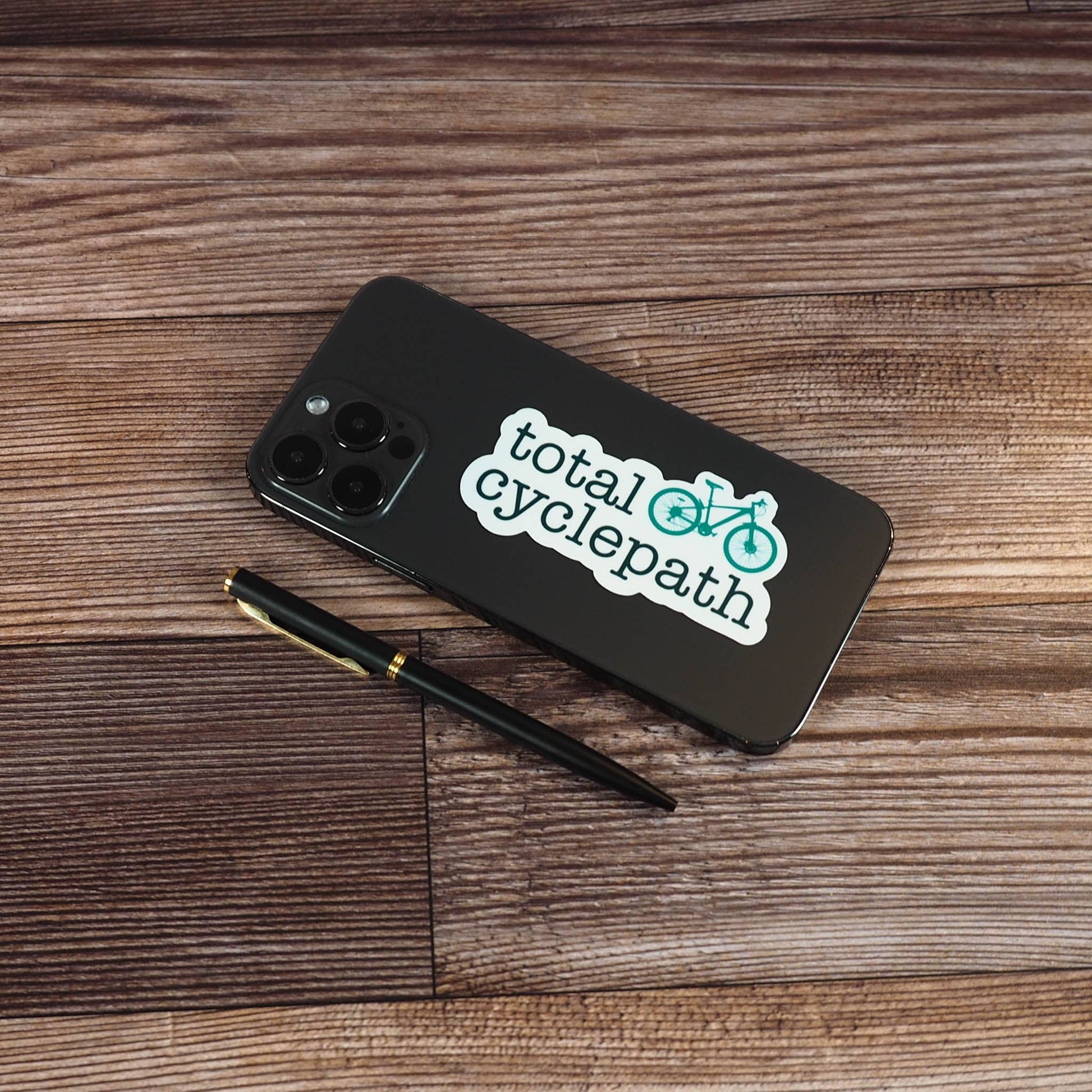 Total Cyclepath sticker, 3.5" wide laptop & tumbler decal size. Durable die-cut vinyl decal with a matte UV-resistant coating. Waterproof & weatherproof for indoor & outdoor use. Made in USA.